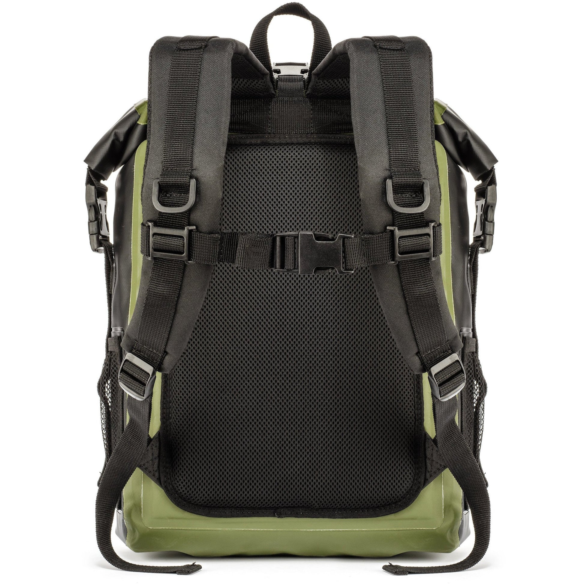 - Sonic-welded seams, padded ergonomic shoulder straps and roll-top closure