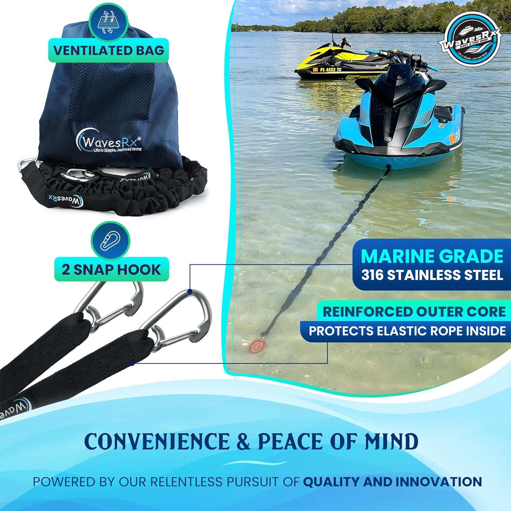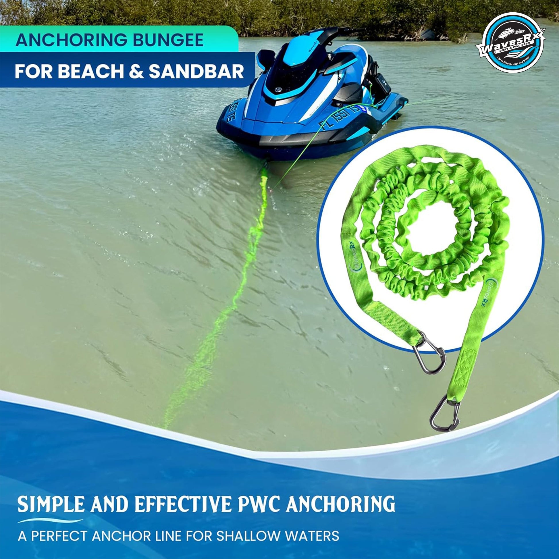 - SIMPLE AND EFFECTIVE BEACH ANCHORING! - You found this picture perfect secluded beach with no dock - time to open up your WavesRx Accessories bag. With easy hooks on both ends, throw in the main anchor into the deeper end and make sure it’s grabbing, then connect the AnchorMate rope to the opposite side of your watercraft and anchor it near the shore. Time to relax and enjoy your new private beach!