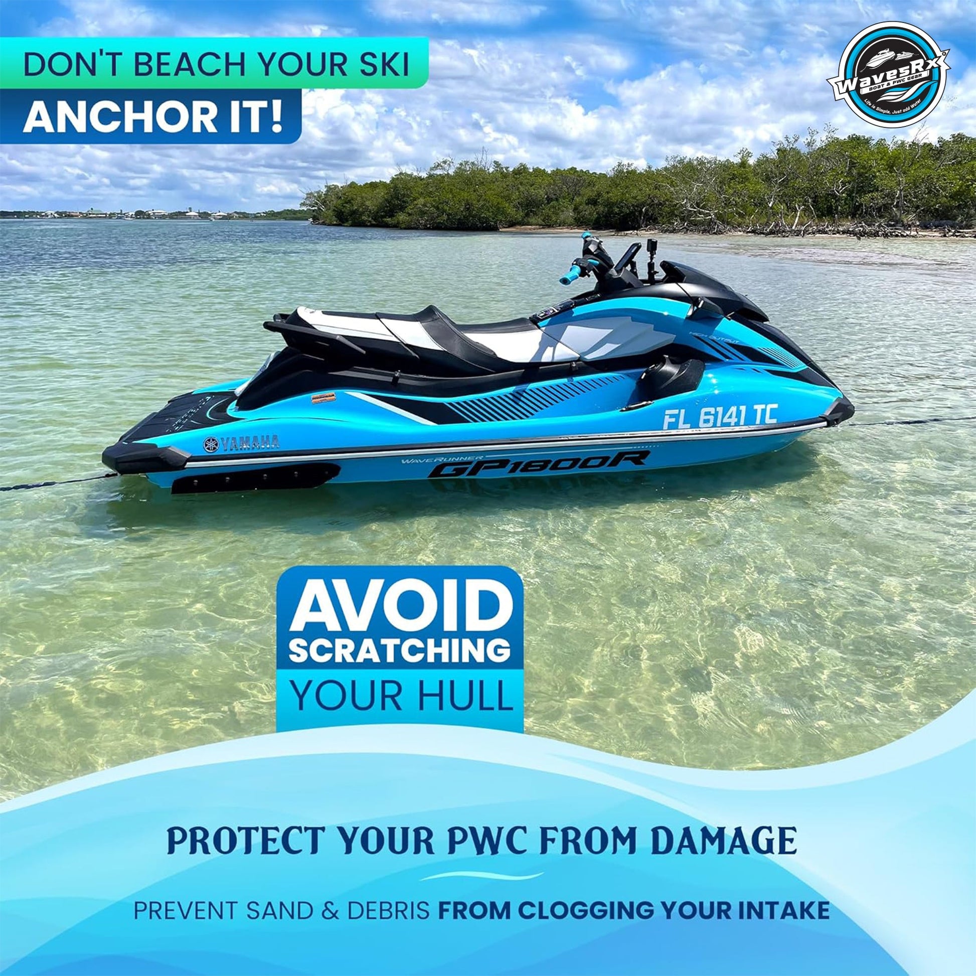 - KEEPS YOUR WATERCRAFT SECURELY TETHERED! - When connected to a beach anchor and used in combination with a deep water anchor, it creates a strong tether that will hold your Jet Ski stationary even in rough surf and prevent it from drifting away or colliding with nearby watercraft.