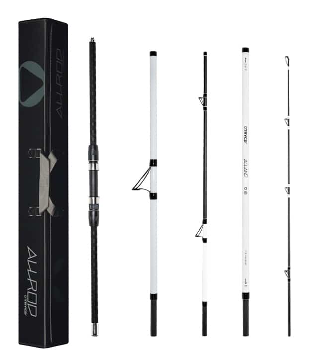 The Allsurf can be fished as an 8′, 10′ or 12′ rod, giving you the most versatile, travel surf rod on the water! This rod can handle the beach, jetty or boat. Cast plugs, lures, poppers, Carolina or drop shot rigs-the possibilities are endless! Also, traveling fly anglers have discovered that ALLSURF is the ultimate companion for inshore bait-and-switch work.