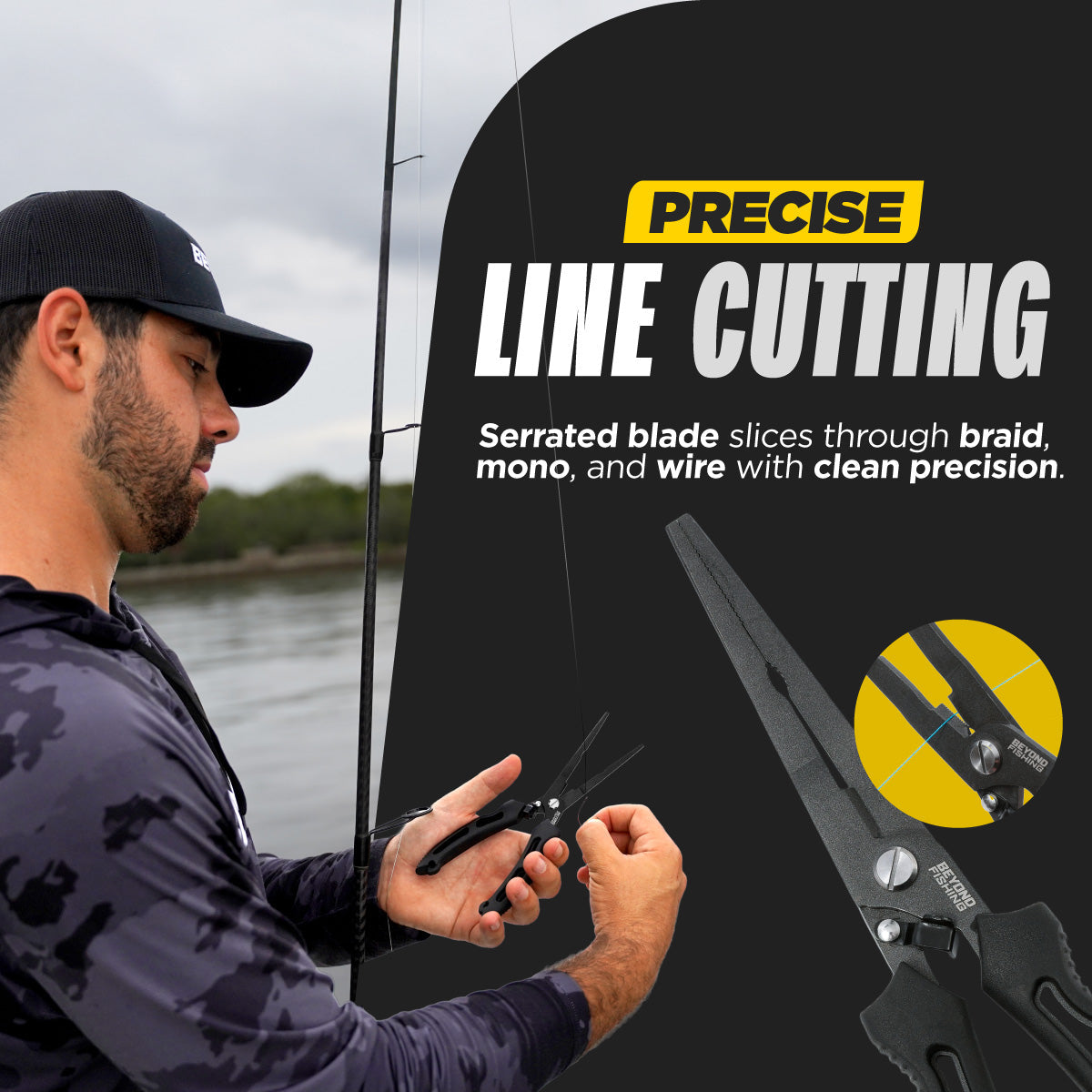 SERRATED BLADES FOR CUTTING BRAID & LINE - The Beyond fishing long nose fishing pliers come equipped with a built-in serrated blade that slices through braided line, monofilament, and steel wire with ease. The perfect feature for fast rigging and hassle-free line changes.