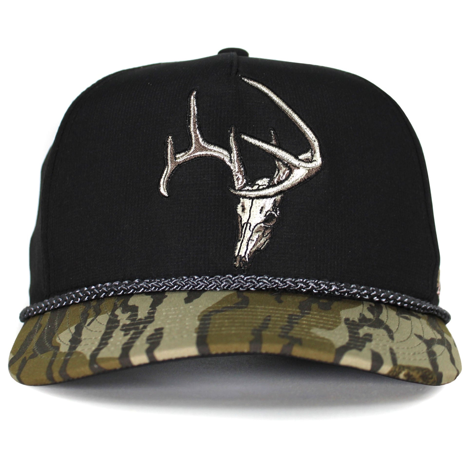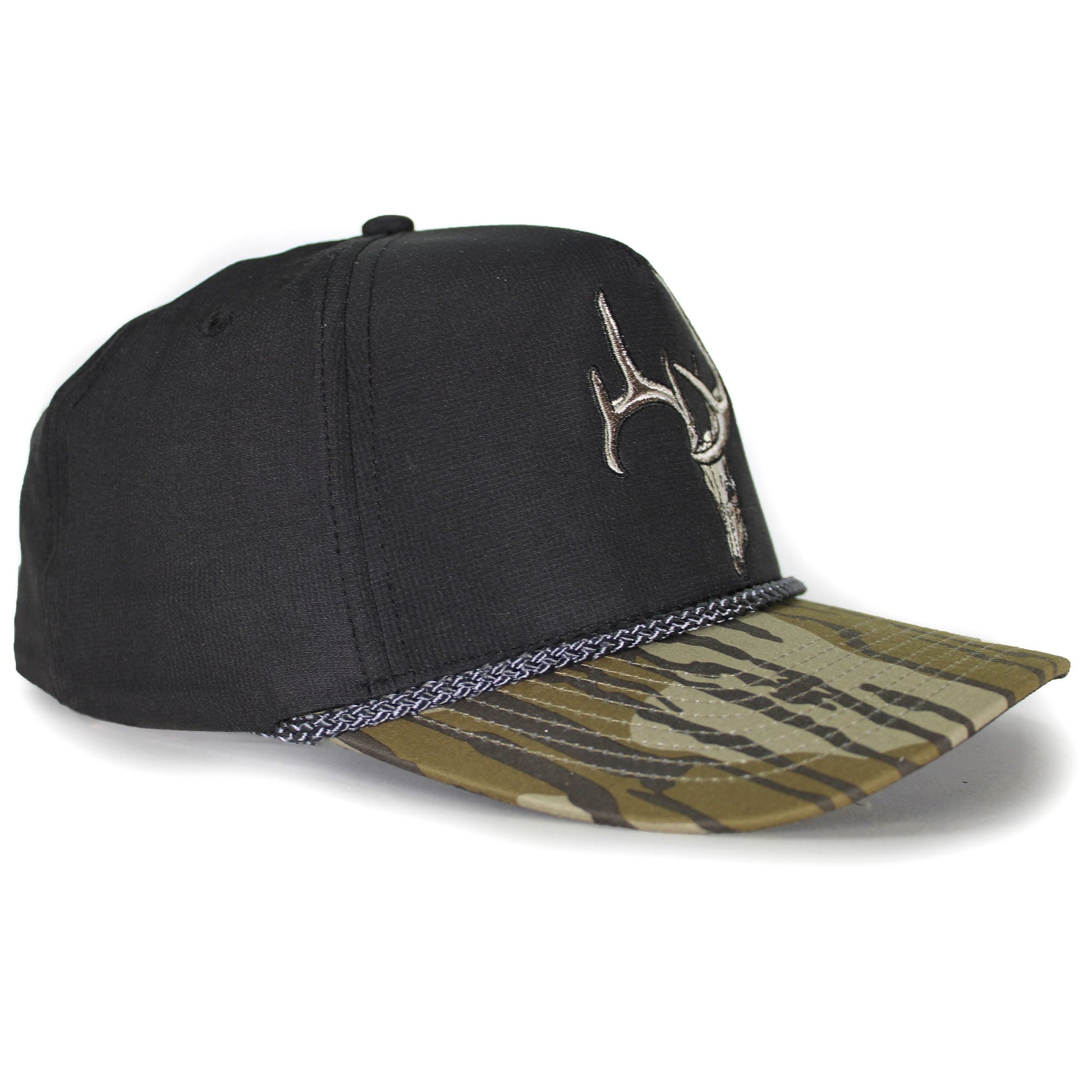 The Bottomland Deer Skull cap is built on our 5-panel Trucker base camp style featuring ultra lightweight micro-ripstop fabric. Coupled with a trucker hat style structured front panel with a detail deer skull embroidery. Additionally, features our COMFORT SNAP elastic closure which couples the stretch fit of a custom cap with the adjustability of a snapback. Lastly, this original Bottomland Deer Hat features American Fit sizing which fits men's head sizes MD - XX.