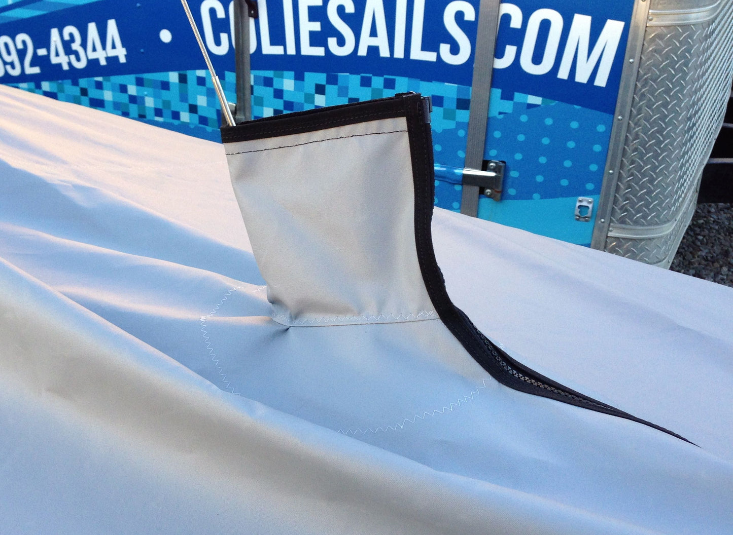 The Colie Deluxe E-Scow Top Cover is the BEST E Scow Top Cover on the market. Tired of those crummy top covers that can't zip shut or rip after one season? This cover will last longer than the life of your E Scow! This top cover is indestructible. We've added a fully vented mesh back panel and a small mesh panel in the front to allow your boat to breathe and dry out overnight. The mast attachment is easy to put on and take off and prevents water from going in your boat. The tie down straps go to your trailer instead of through it, making fastening easier than ever. We've thought of everything to make this the best product out there!