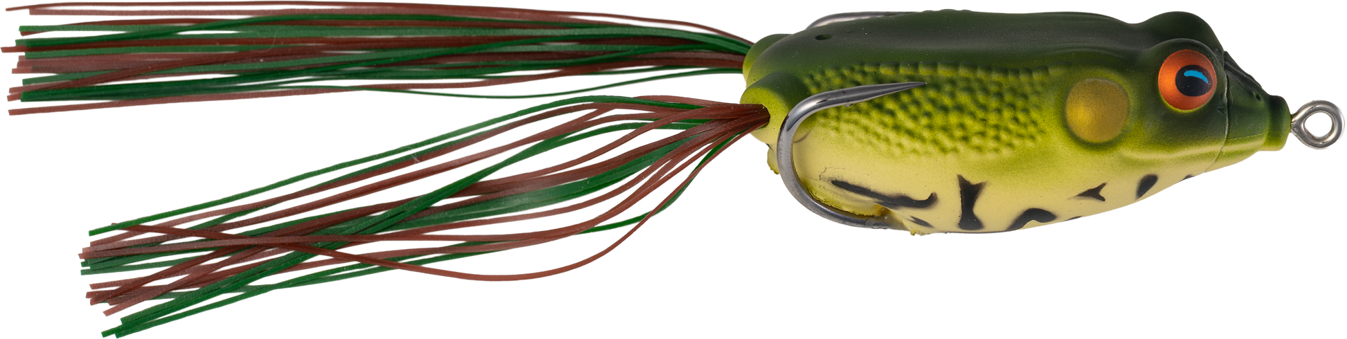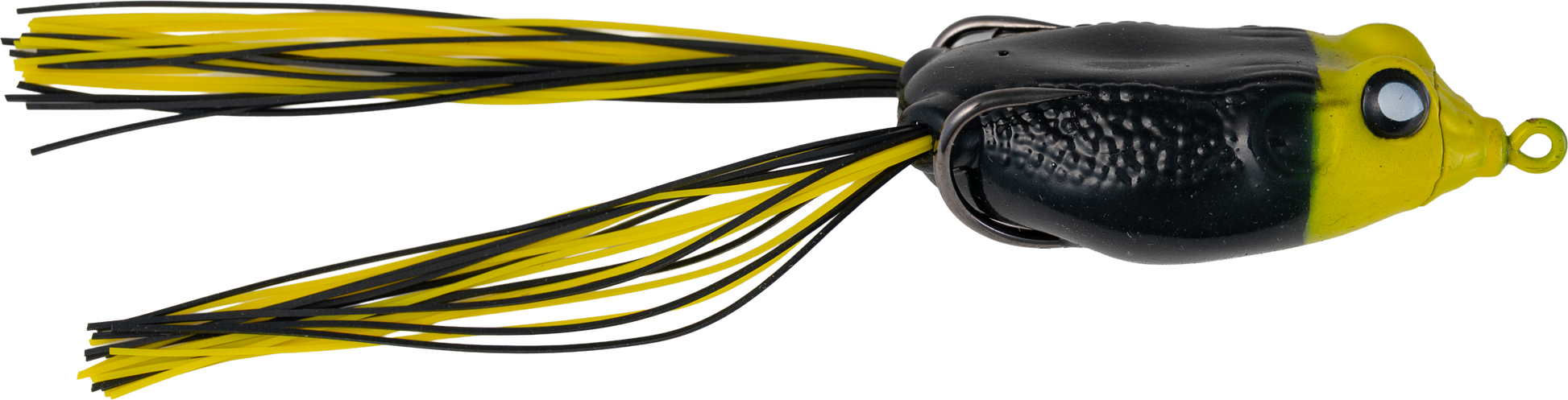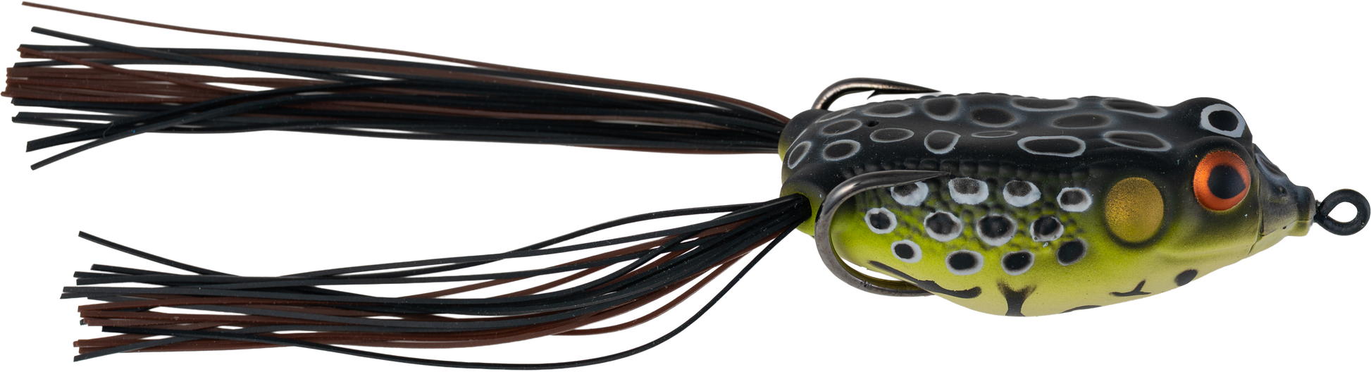 Con Frog comes equipped with a revolutionary hard nose design with a sherman in mind, allowing the frog to go through the heaviest of cover without malfunctioning. The body is connected directly to the hard nose, preventing the frog from sliding up the line or turning inside out.Equipped with a heavy-duty hook, a silicone hook hole to prevent water from entering the cavity, and a breath hole on the top side of the frog. This frog ensures durability and proper action, cast after cast!