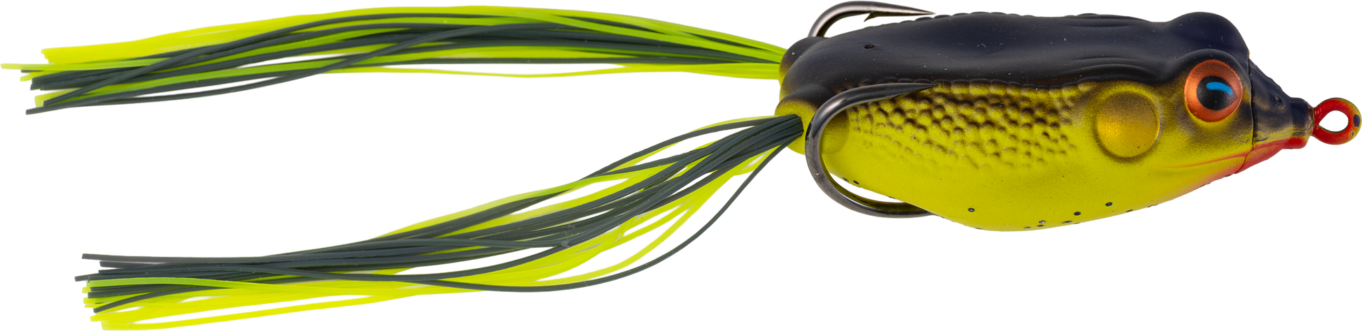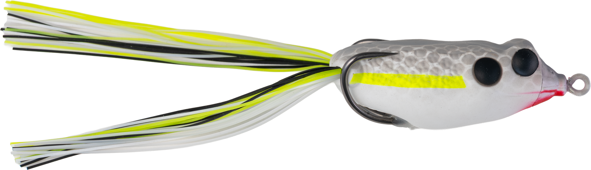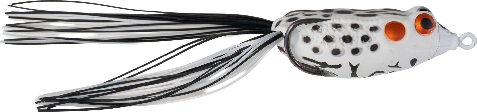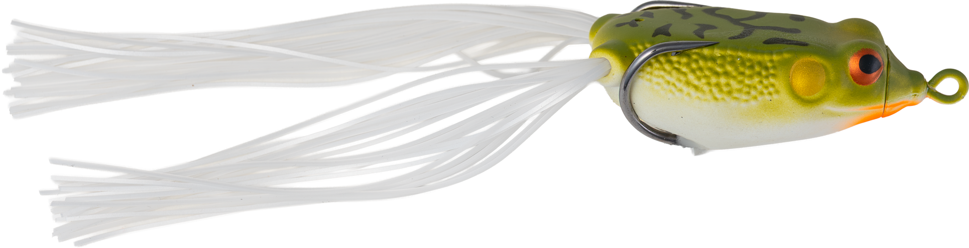 Con Frog comes equipped with a revolutionary hard nose design with a sherman in mind, allowing the frog to go through the heaviest of cover without malfunctioning. The body is connected directly to the hard nose, preventing the frog from sliding up the line or turning inside out.Equipped with a heavy-duty hook, a silicone hook hole to prevent water from entering the cavity, and a breath hole on the top side of the frog. This frog ensures durability and proper action, cast after cast!