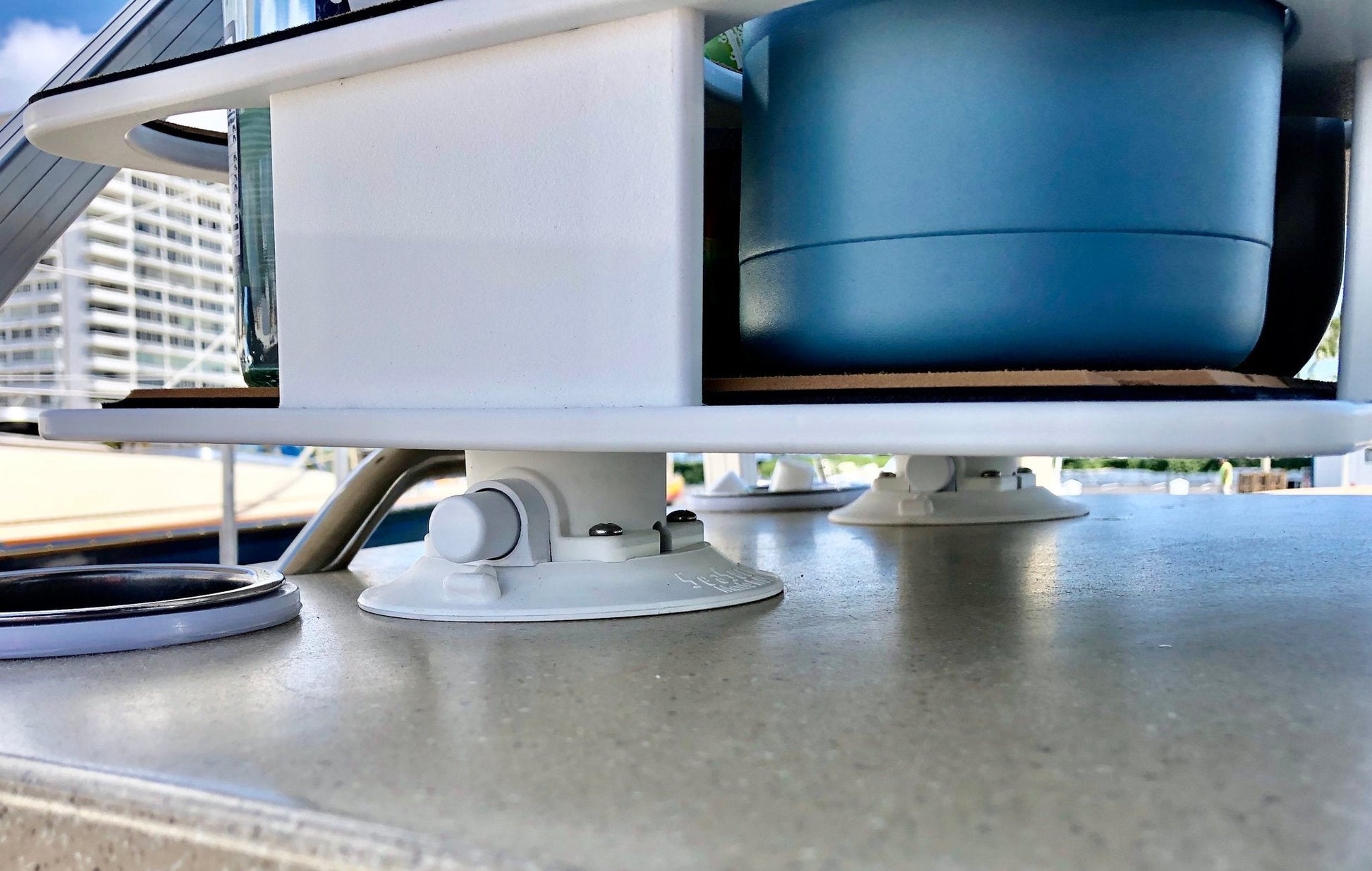 - The table suctions down to countertops, table tops, flat bar surfaces, flybridge nooks and other smooth flat surfaces where you want to secure items from tipping or spilling. Will not work on NON SKID surfaces!