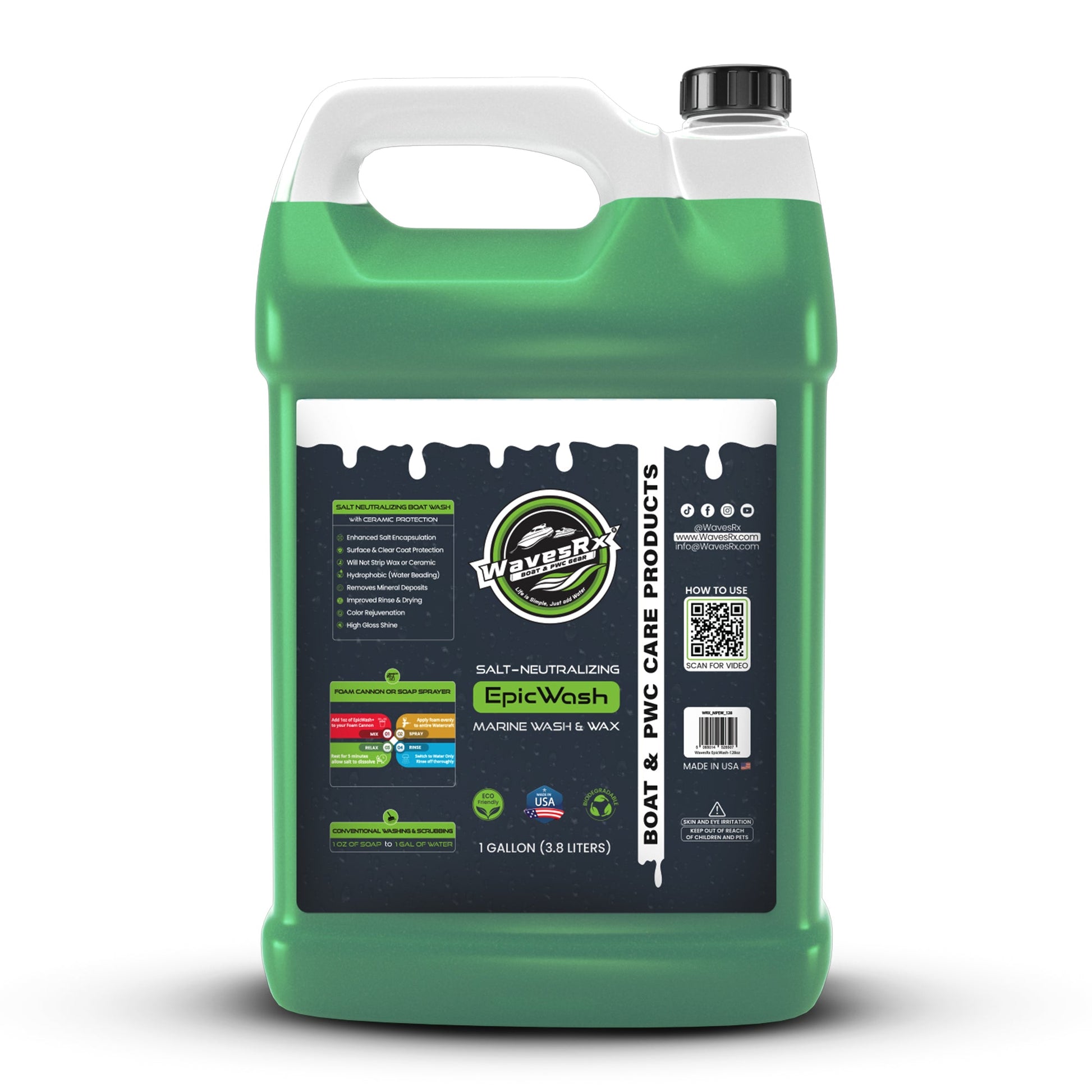 WAVESRX Salt Neutralizing Boat Soap & Deck Wash with SiO2 Surface Protection (EpicWash+) | Marine Grade Cleaner Removes Salt & Contaminants | Protective Ceramic Coating Prevents Buildup & UV Damage