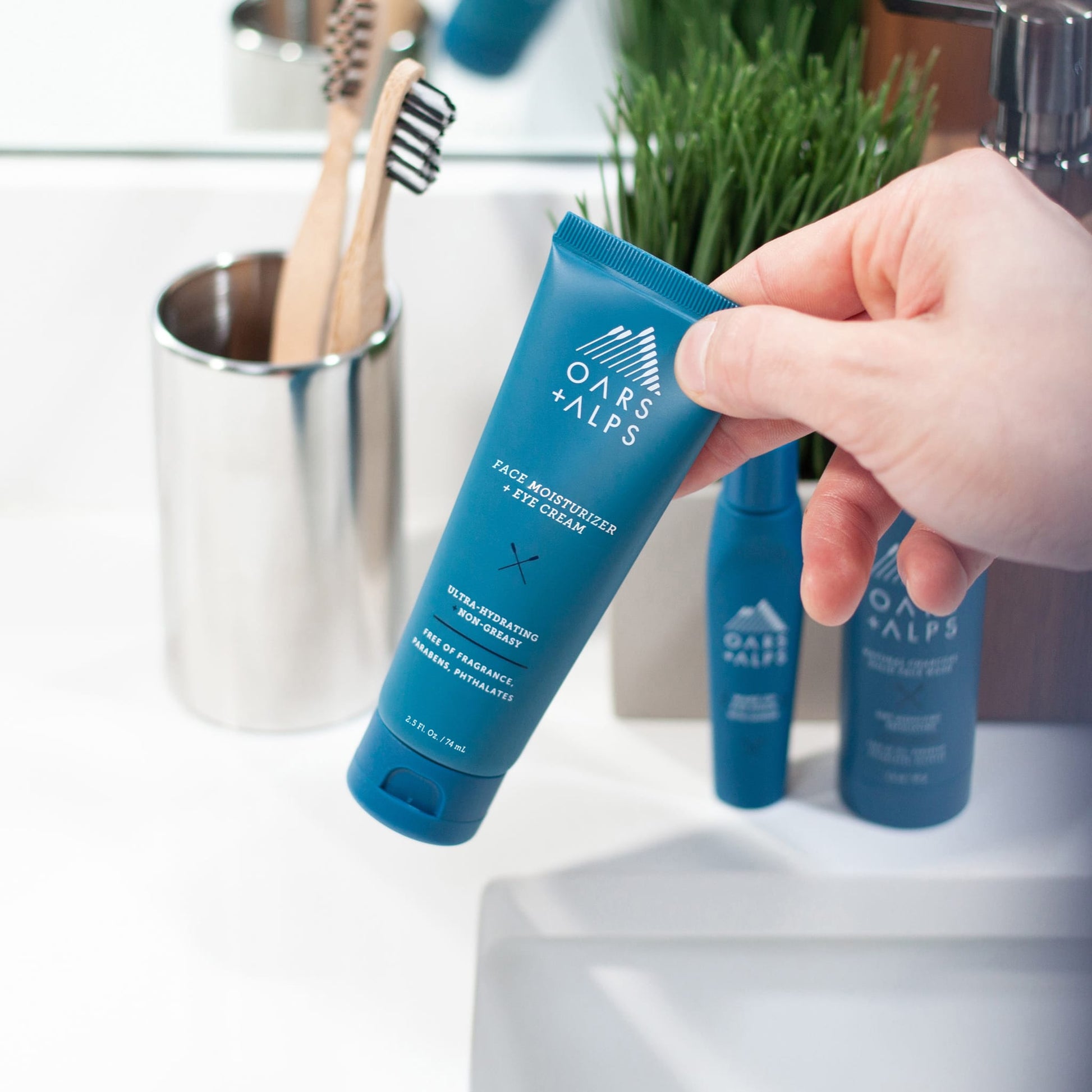 Our ultra-hydrating Face + Eye cream boosts and locks in your skin’s moisture with ingredients like Shea Butter and Jojoba Oil. Meanwhile, Aloe and Vitamin E fight free radicals, a main culprit of aging. Alpine Caribou Moss™ promotes skin elasticity and guards against environmental stressors like pollution.