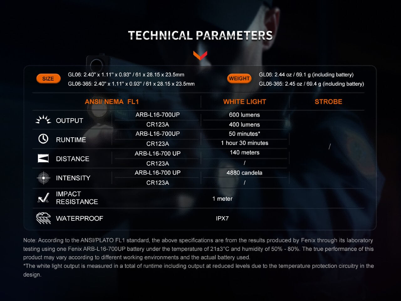 The GL06 pistol light features a 600 lumen high-intensity beam to identify targets from afar, strobe to disorient adversaries, versatile rail compatibility, and a quick-release design. Furthermore, this patented replaceable rail key design ensures secure attachment to Glock and Picatinny rails. Accompanied by a patent-pending lever latch system, the GL06's ambidextrous switching can be activated with one finger - momentary or constant-on. This light is powered by an ARB-L16-700UP battery that can be charged via USB cable or compatible battery chargers. The GL06-365 variant is designed to fit SIG Sauer P365 / P365XL and other handguns with similar rail dimensions.