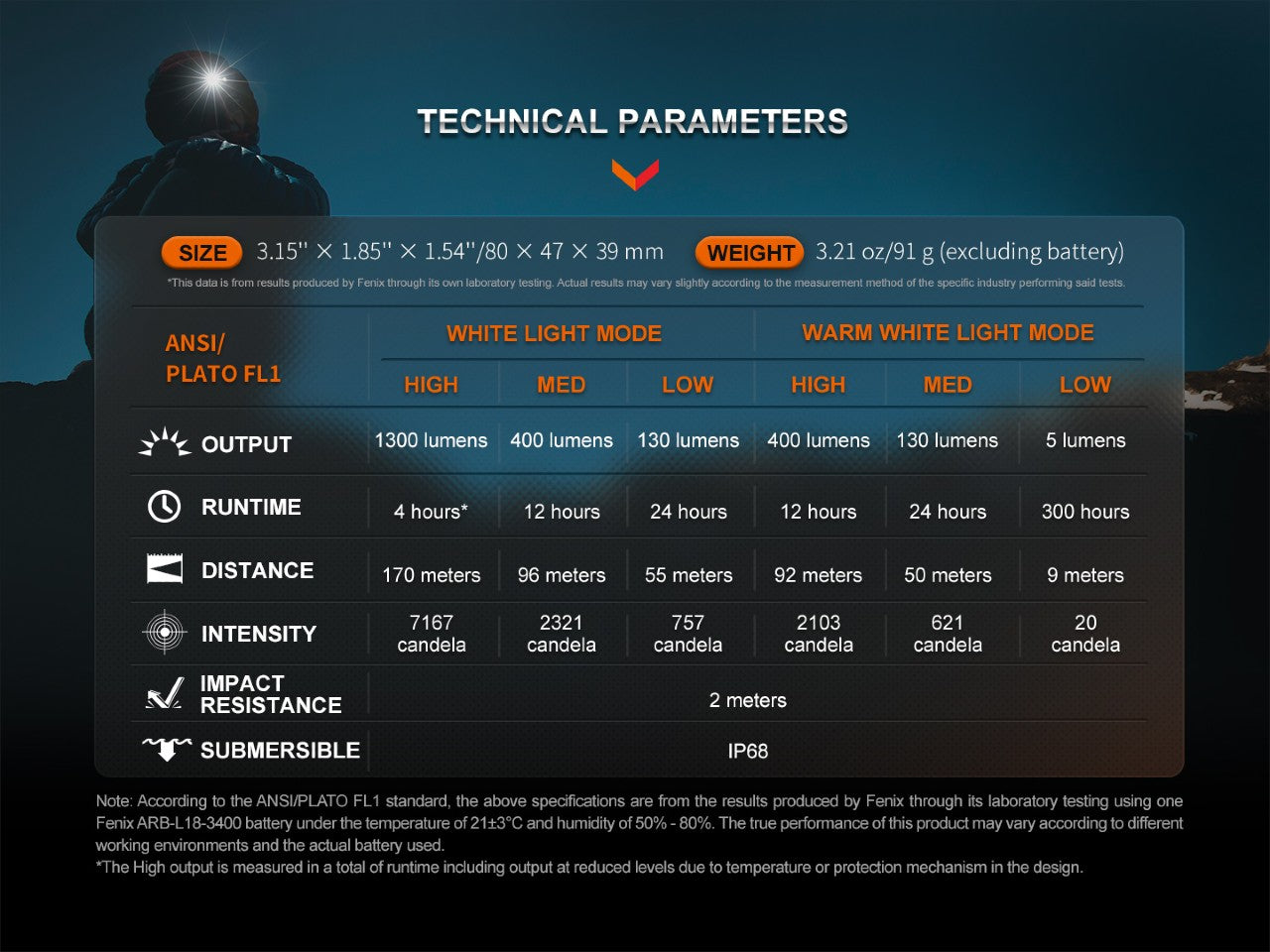 The HM65R-DT is a top-end headlamp designed for endurance trail running. It boasts up to 1500 lumens, a throw distance of 560 ft (170 meters), a warm white light LED (3000K) and a lightweight magnesium alloy build. Comes in three colors, plus a SPORT fit system for single-handed adjustment. Perforated headband for ventilation and comfort. Operates in temperatures from -35°C/-95°F to 45°C/113°F.