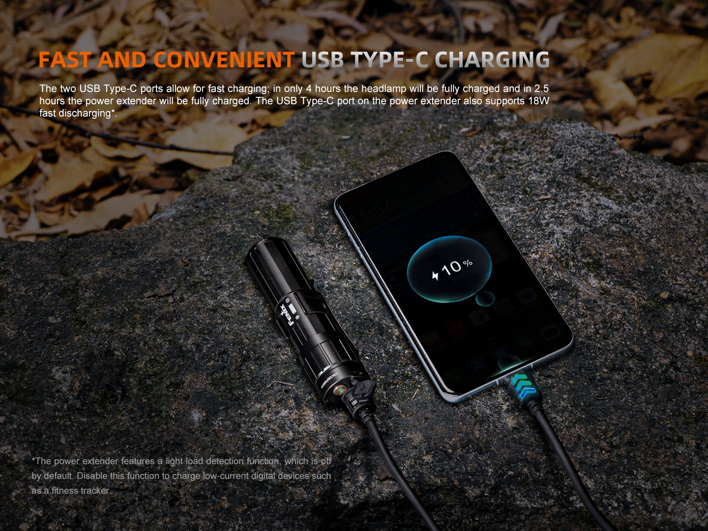 Boasting 1600 lumens of maximum output and reaching distances up to 732 feet and up to 18.9 hours of maximum runtime, the HM75R will be there to meet your needs. Charging is swift and efficient with USB-C fast charging, fully charging the headlamp in just 4 hours and the extender in 2.5 hours, while the extender also supports 18W fast discharge for your devices. It also features an intelligent brightness downshift technology that automatically adjusts the light intensity to prevent blinding when approaching objects closely.