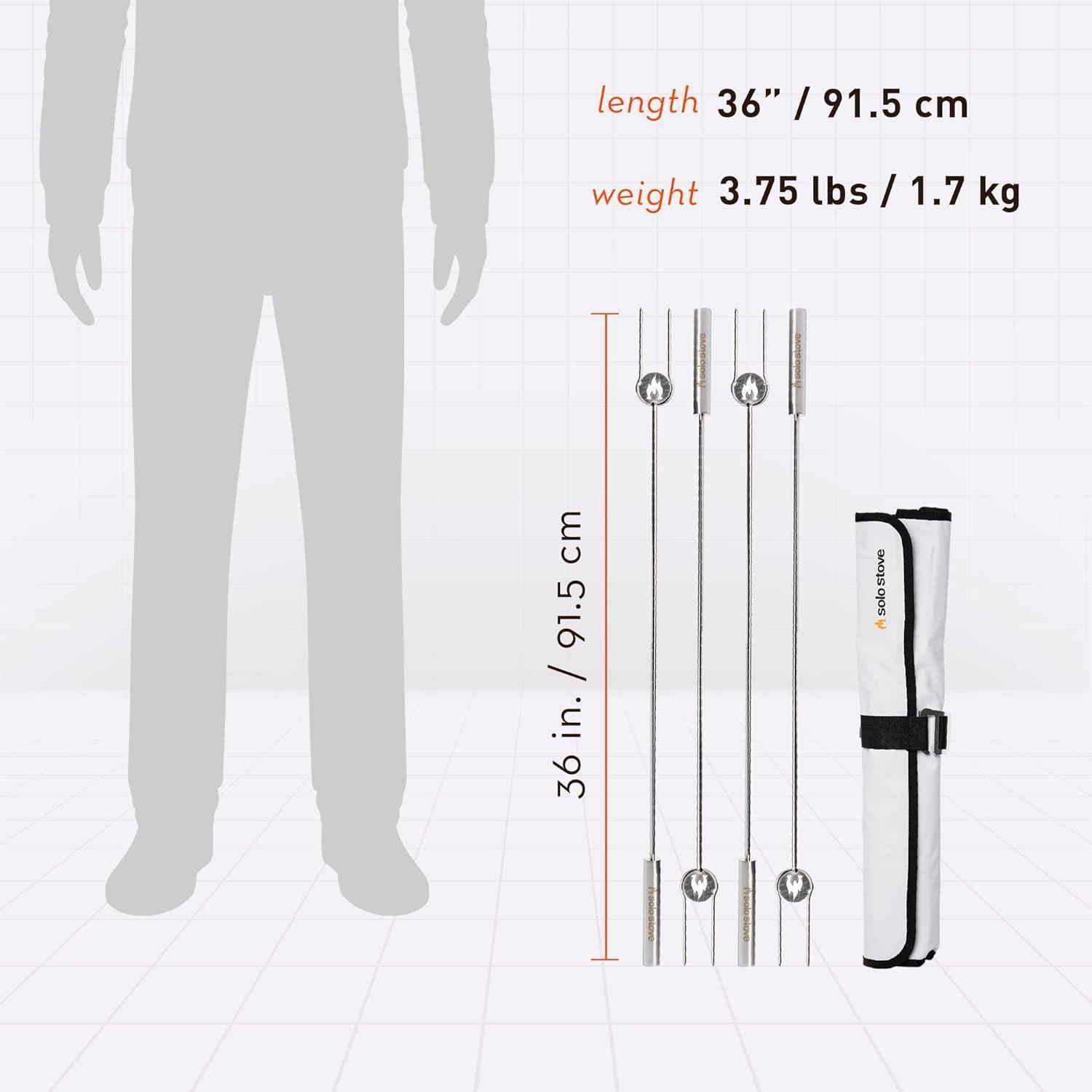 - SET OF 4 - Our Solo Stove Sticks set is perfect for roasting hot dog, marshmallows and s'mores over your Ranger, Bonfire, or Yukon fire pits. The kit includes 4 pieces of sticks perfect for your gatherings and reunions.