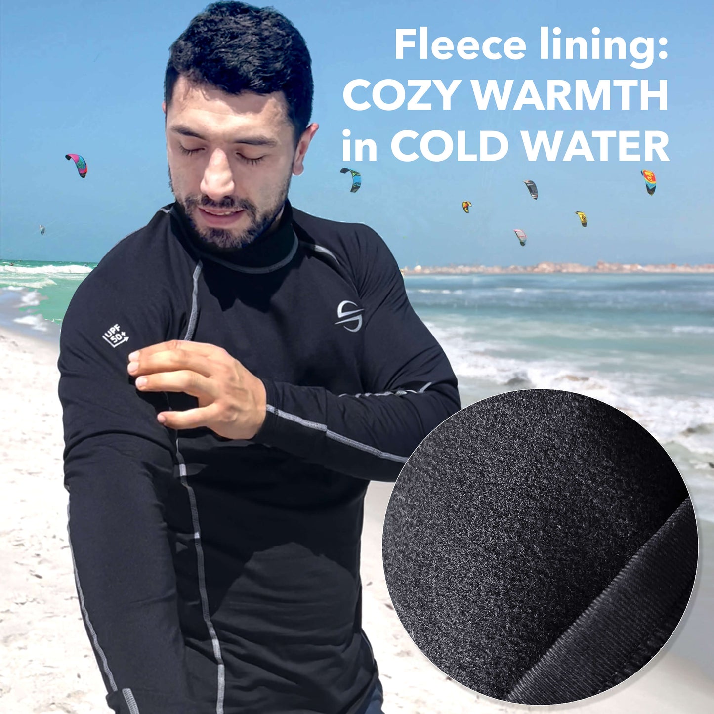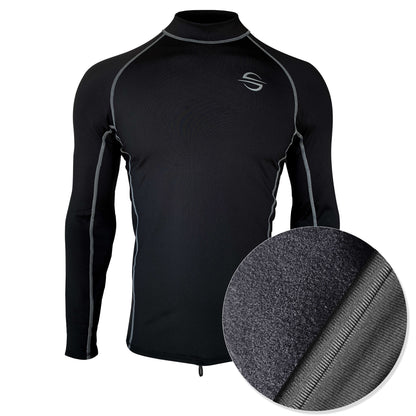 Fleece-Lined Thermo Rash Guard for Cold Water, Unisex UPF 50+ | Black