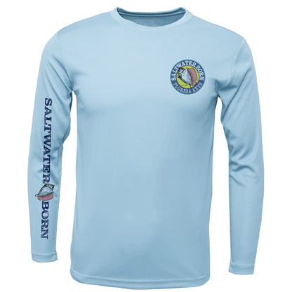 A great shirt for the water! UPF 50+ sun protection and made of 100% polyester Extreme-Tek material that is breathable, anti-bacterial, and moisture-wicking. The shirt is sublimated so there are no hot spots or peeling.