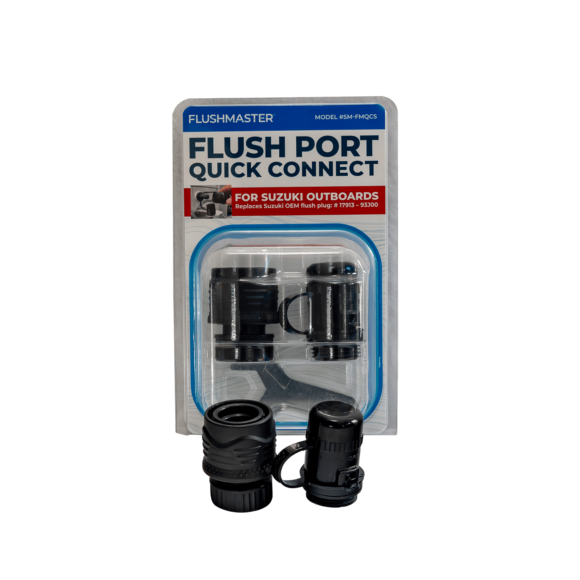 The Flush Port Quick Connect for Suzuki Outboards solves it for good. This easy-to-install upgrade permanently replaces your OEM flush port with a smooth, leak-free quick connect that works the first time, every time — no more fighting with your hose, no more damaged threads, no more frustration.