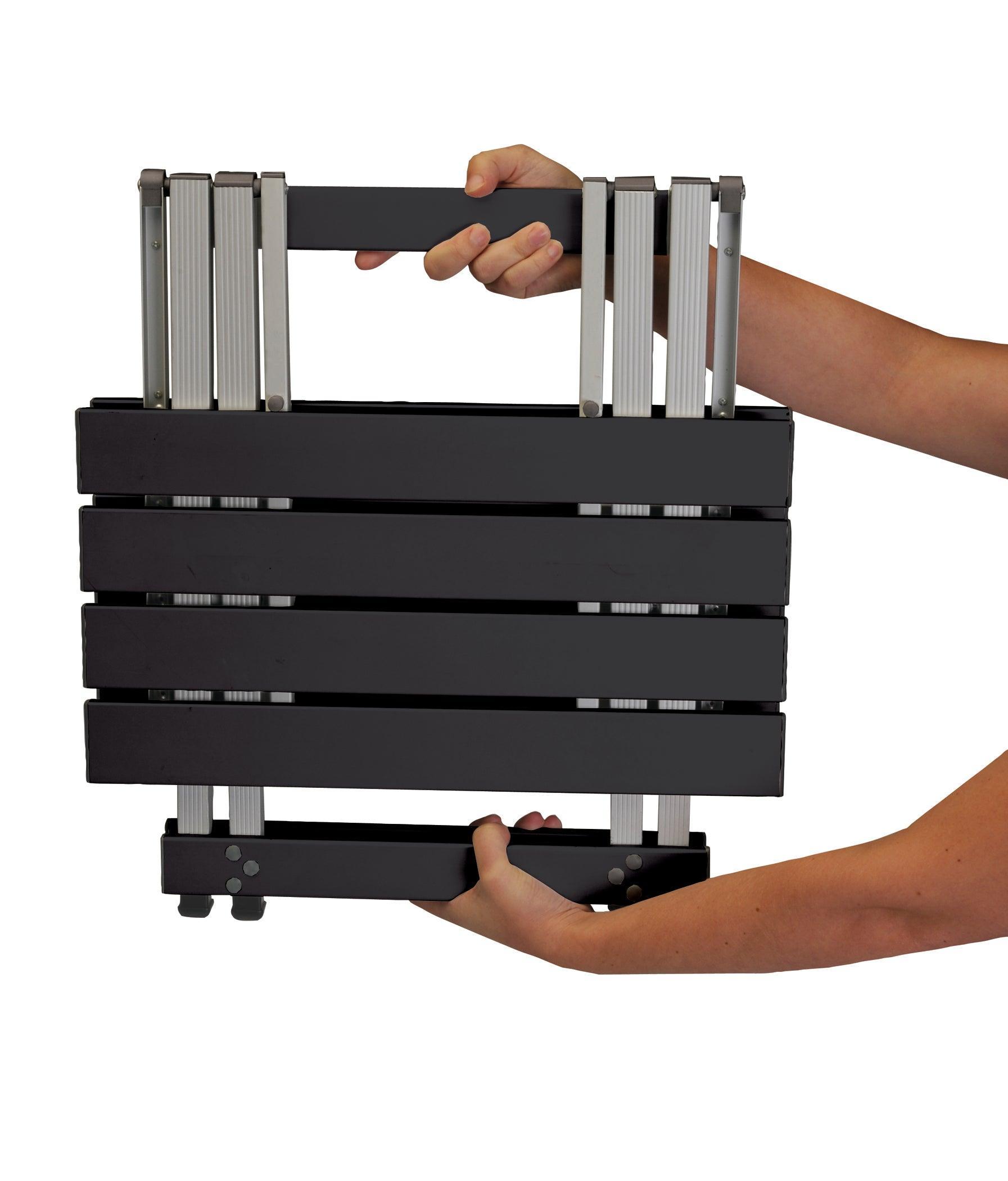 Telescoping leg design: Allows the one-piece, full-sized table to collapse easily and fold compactly.