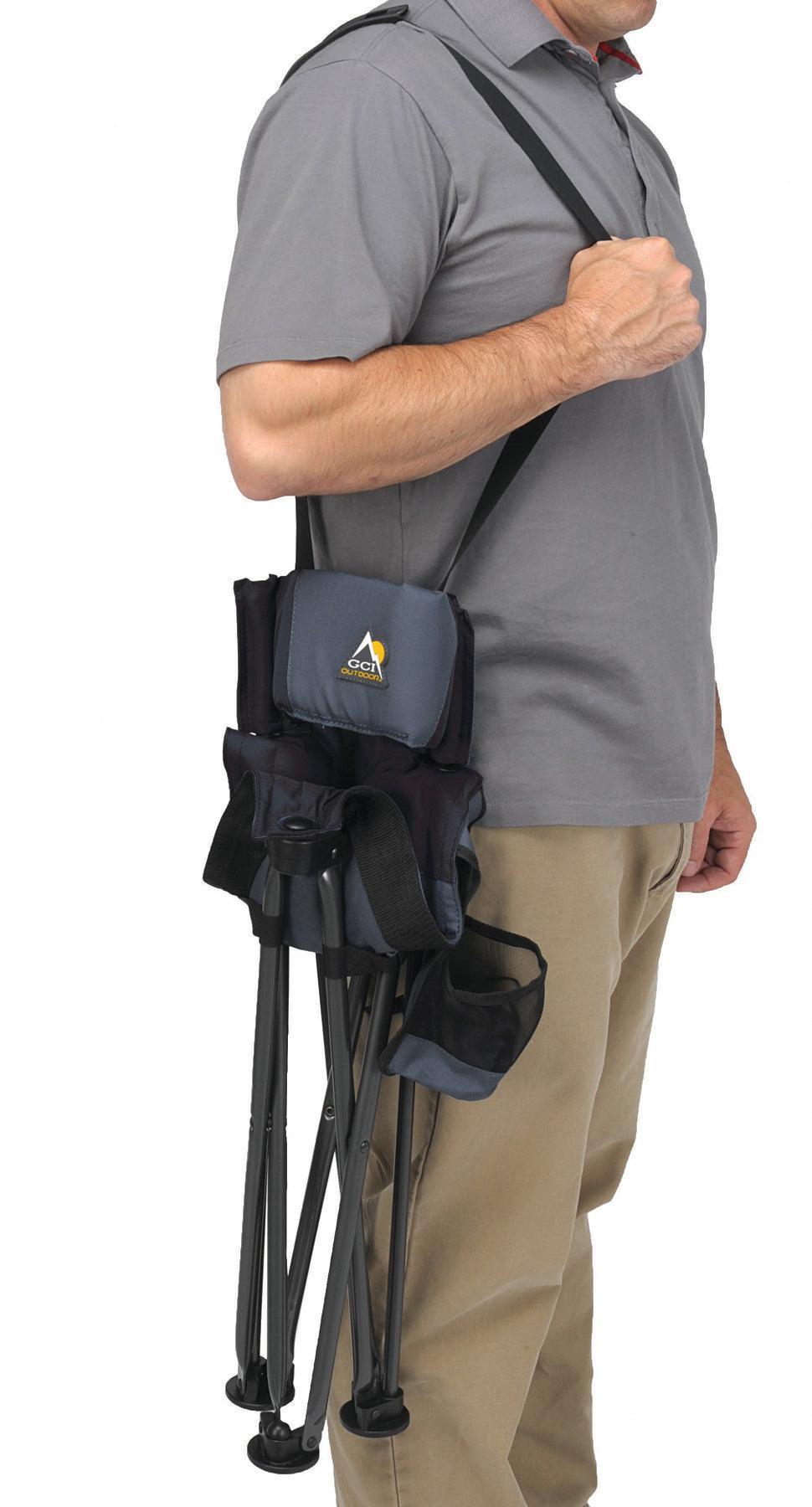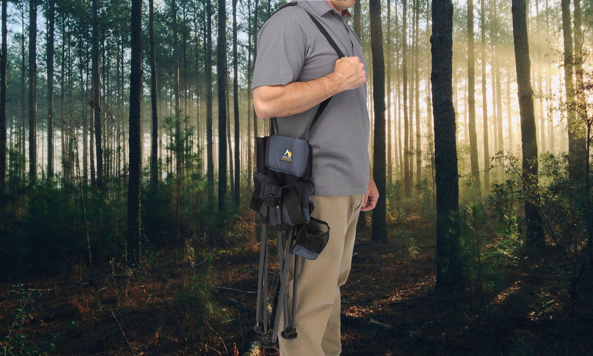 Easy Storage: Shoulder strap with Auto-Fold Technology allows for easy folding and carrying; Simply pull up on the carry strap to collapse the folding camp stool.