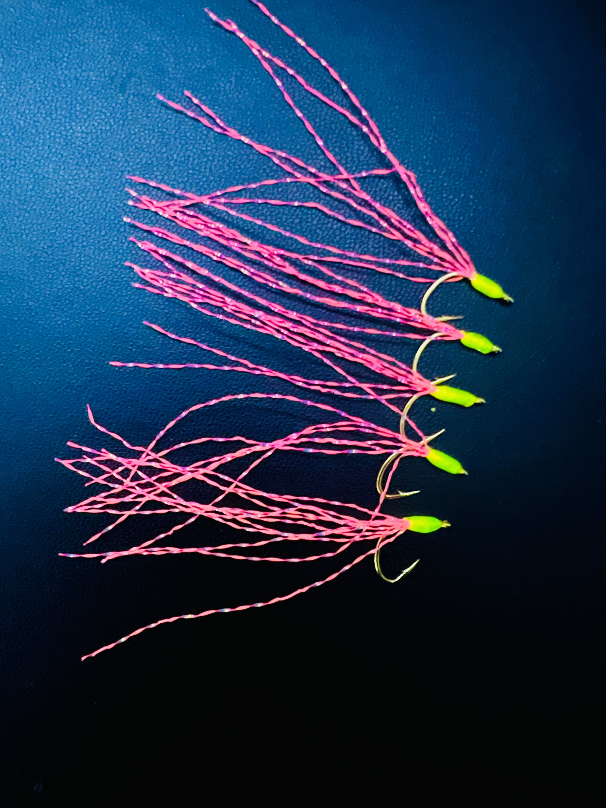 When the Halalu around, these pound! Red head is dressed with UV material that flashes in sunlight & glow is dressed with green heads w/ glow flash.