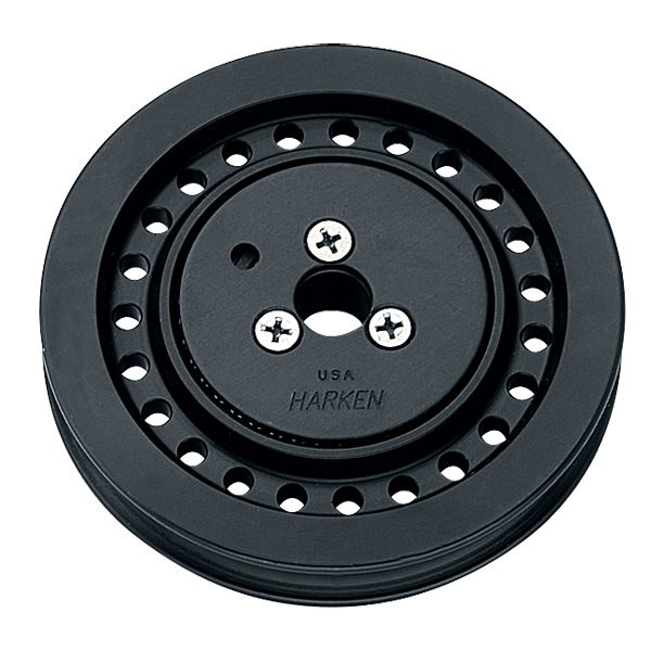 Narrow high-load sheaves in mastheads improve sail handling, speed sail changes, and allow the use of smaller, lighter halyard winches. Sheaves combine sideload-carrying balls with a PTFE composite bushing for radial loads.