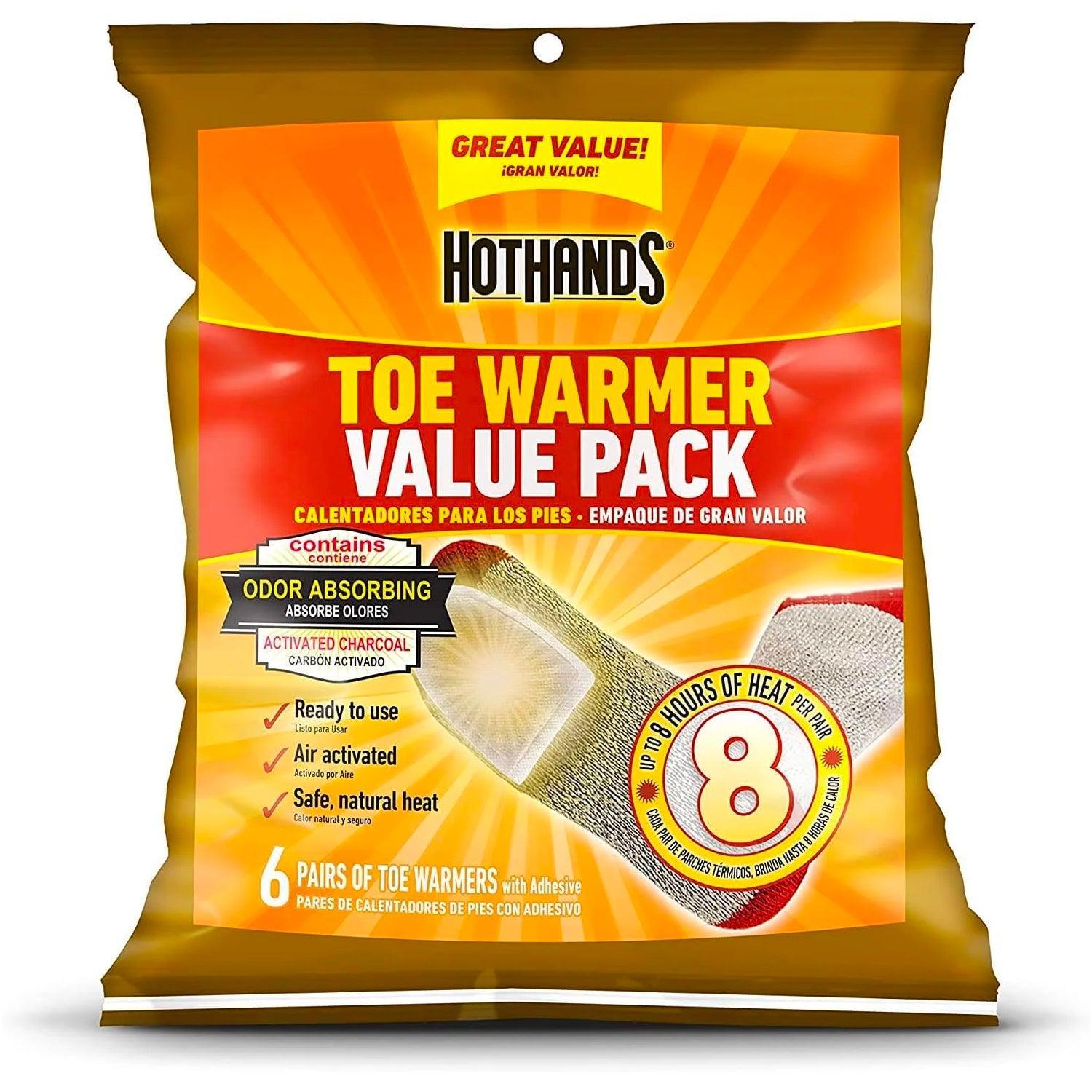 HotHands Toe Warmers - Long Lasting Safe Natural Odorless Air Activated Warmers - Up to 8 Hours of Heat - 6 Pair Bag