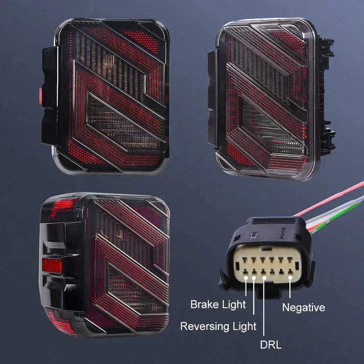 You are sitting with your friends hanging out in the Pigeon Forge Walgreens parking lot, because let’s be real, your vanity is knocking on the roof of your Jeep like all those girls tik tok videos. These Zues JL Tail Lights are exactly what will set you apart. Angled lines with bright Running Lights with a 30W Reverse Lights that will give you that fresh clean look nobody else has. A new design to finally put on your Jeep JL Wrangler that isn’t the same as everyone else. Comes with a built in EMC and anti-flicker harness, plug and play with USA DOT certification.