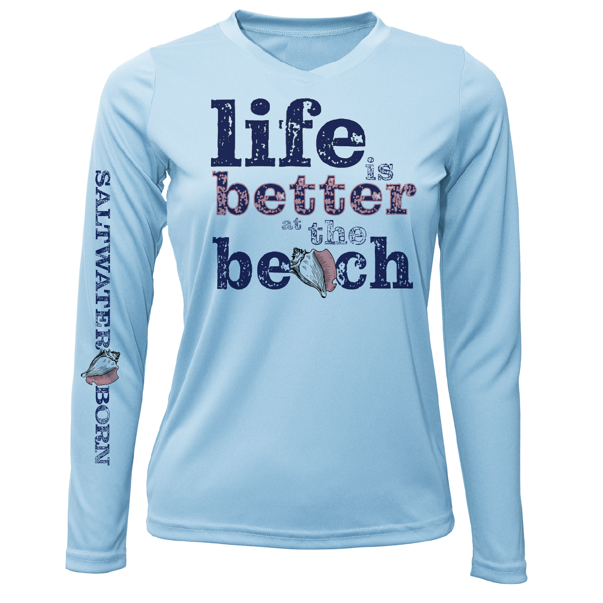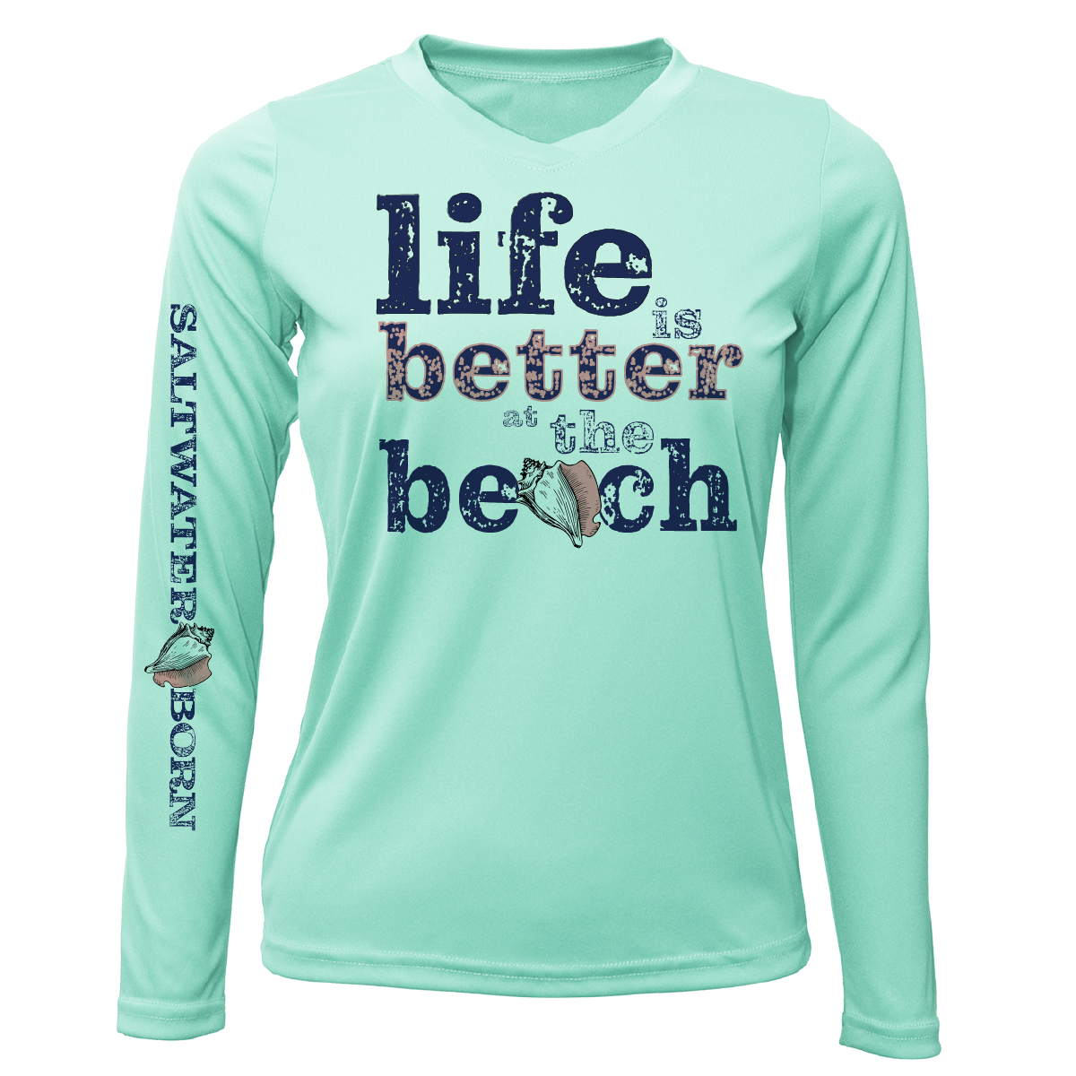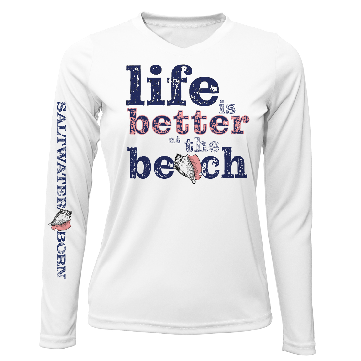 "Life Is Better At The Beach" Conch Women's Long Sleeve UPF 50+ Dry-Fit Shirt (No Back)