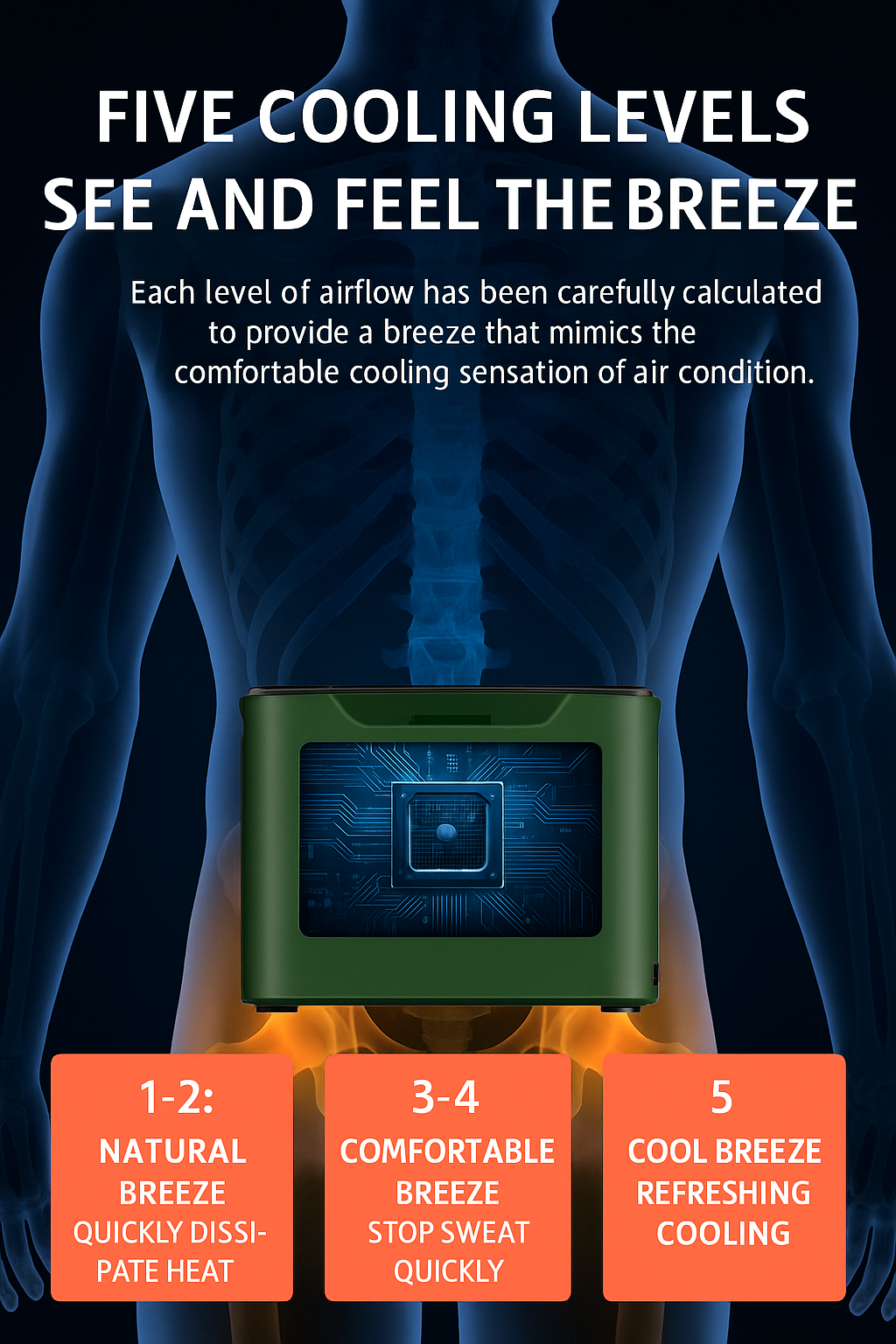 High-Performance Belt Clip Fan: Strong airflow directly to your torso or back, hands-free.