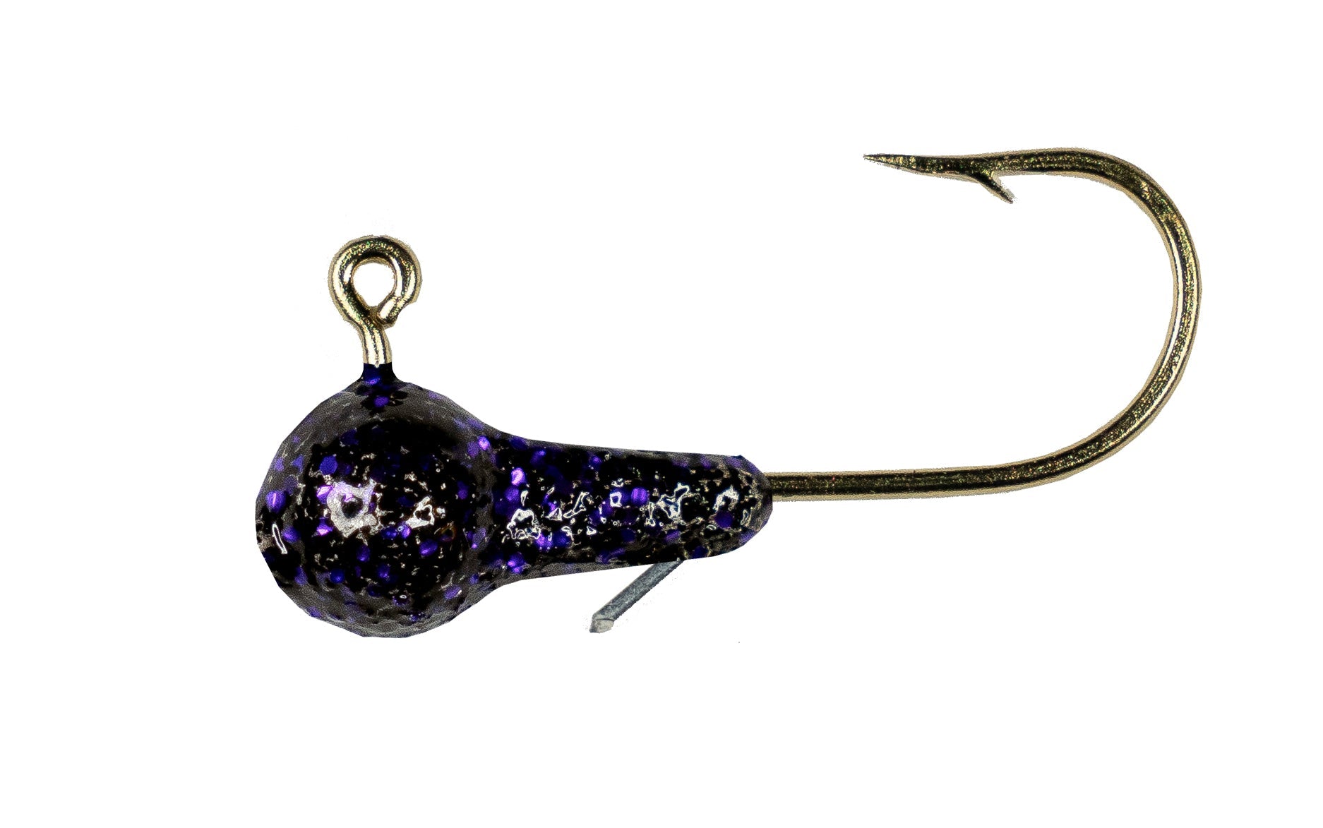 The GOLD-PURPLE-GLITTER is the LT-GOLD dipped in Purple/Black Glitter Powder Paint and dipped again in Clear Coat Powder Paint cured for 20 minutes at 350ºF for maximum durability. Perfect for All-Season Fishing, summer and winter. Excellent for species such as perch, crappie, sunfish, pickerel, bass and more. Equipped with a stout pin and shaft extending out along the hook shank, worms slide on and stay on. No more worms sliding down the hook shank for accurate and consistent presentations.