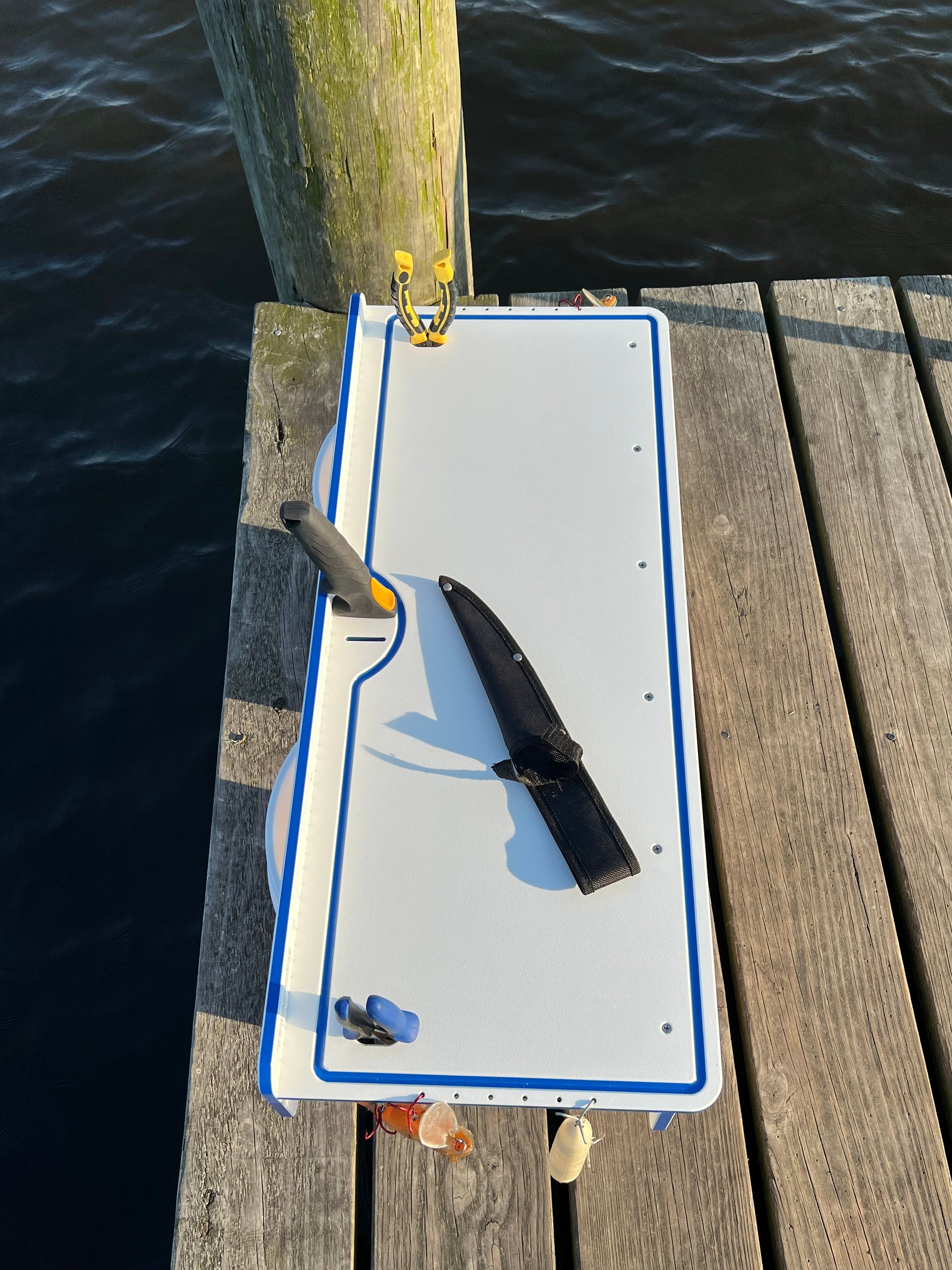 The TRAPSKI Double Fillet Table — the first mobile prep station for buckets, coolers, or flat surfaces. Crafted from marine-grade HDPE, UV-protected, and built to handle the harshest conditions.