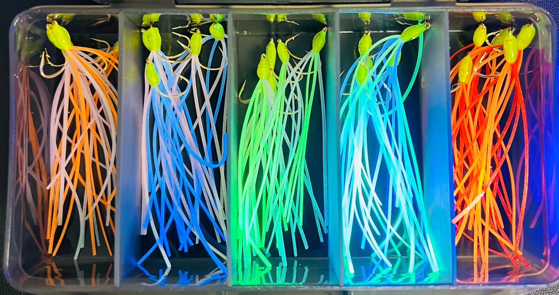 Night bugs are full glow heads and legs for night fishing targeting Akule, Menpachi, Taape.