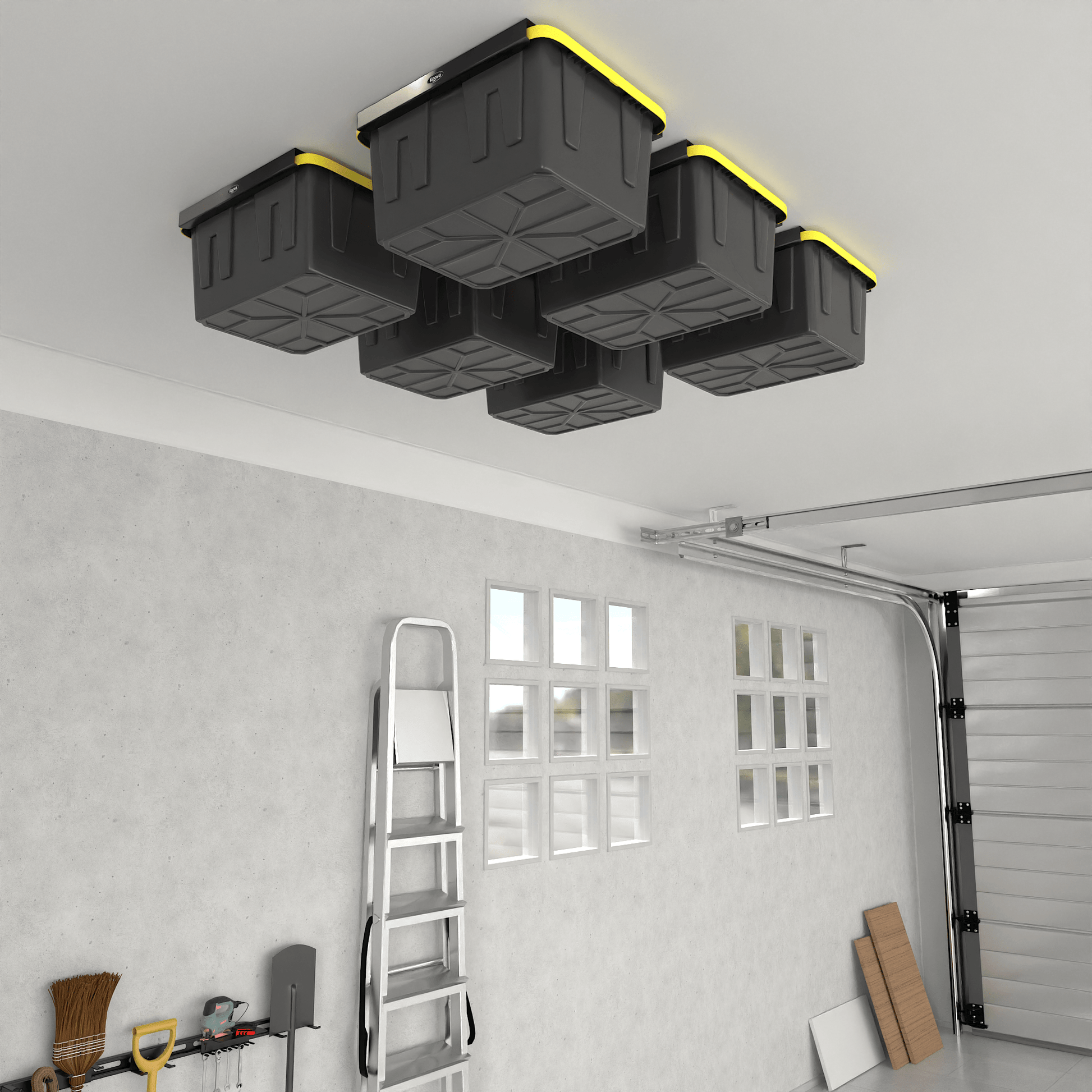 The Koova Overhead Storage system is simple to install and lets you easily access your storage bins when needed. Order one or more today and turn the unused ceiling of your garage into usable storage space.