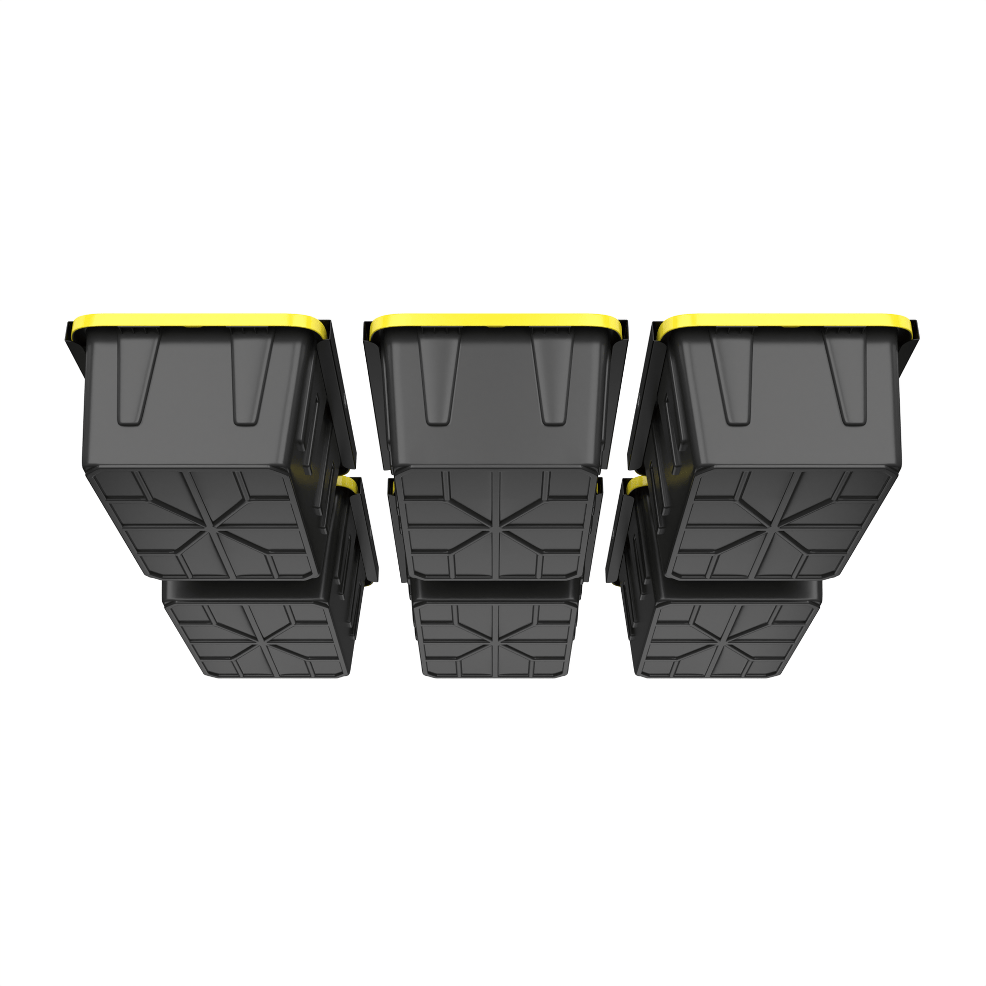 - Supports Most Black/Yellow 27 Gallon Storage Bins (bins not included)