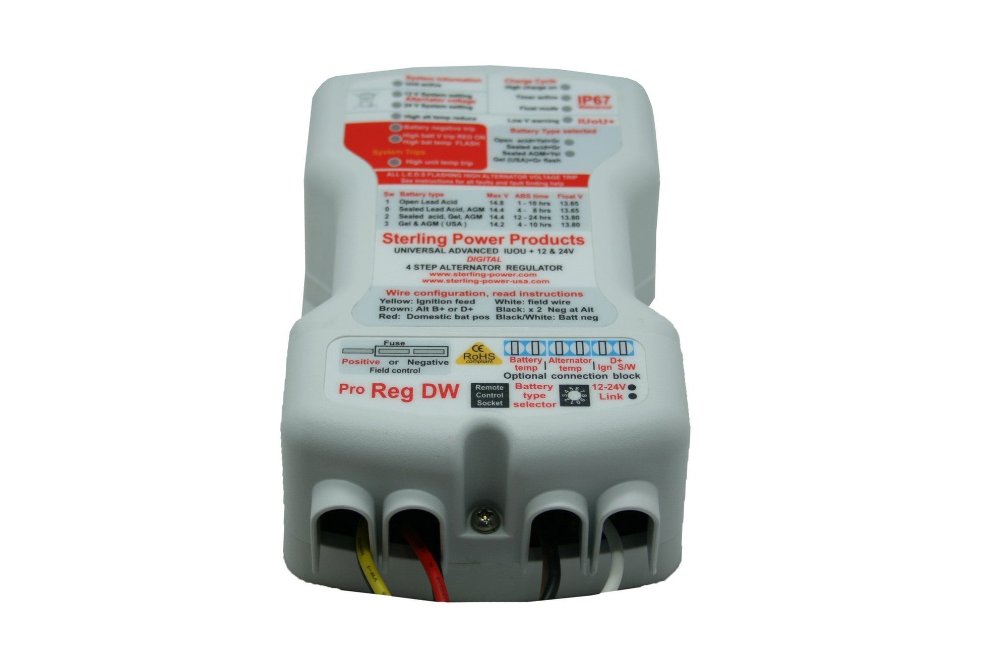 The Sterling Regulator is designed to charge batteries as fast as possible and to their maximum capacity without damage to the batteries or alternators.