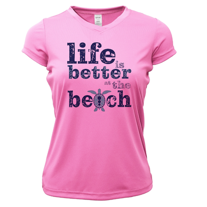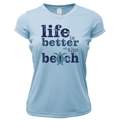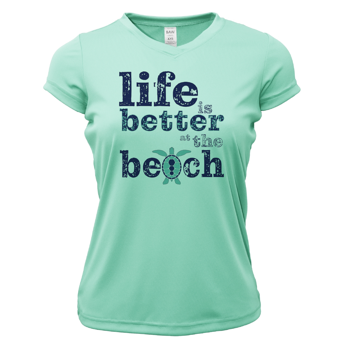 Pensacola, FL "Life Is Better At The Beach" Turtle Women's Short Sleeve UPF 50+ Dry-Fit Shirt