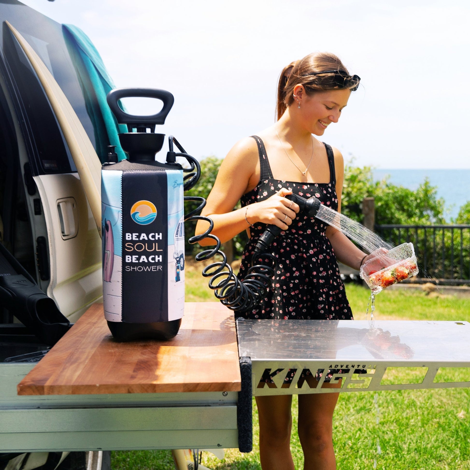 Inspired by surf sessions, beach hangs, and firepit chats, this 2.1G pressurized shower keeps the good vibes going — wherever the day takes you.