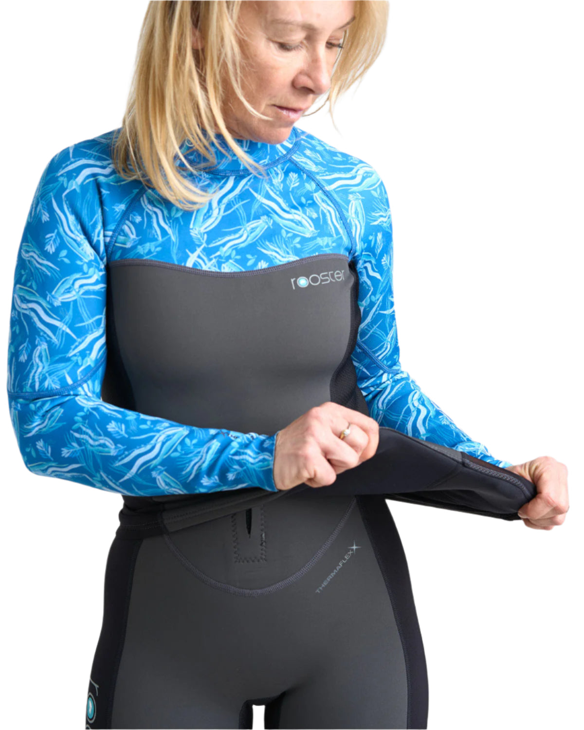Our latest innovation for 2024: the revamped Thermaflex® 1.5mm Neoprene Top, tailored specifically for women. Crafted with an ultra-soft, stretchy design, this garment builds upon the success of our Azure version. We've meticulously integrated feedback from customers, female focus groups, and advancements in materials and technology to elevate every aspect of this piece.