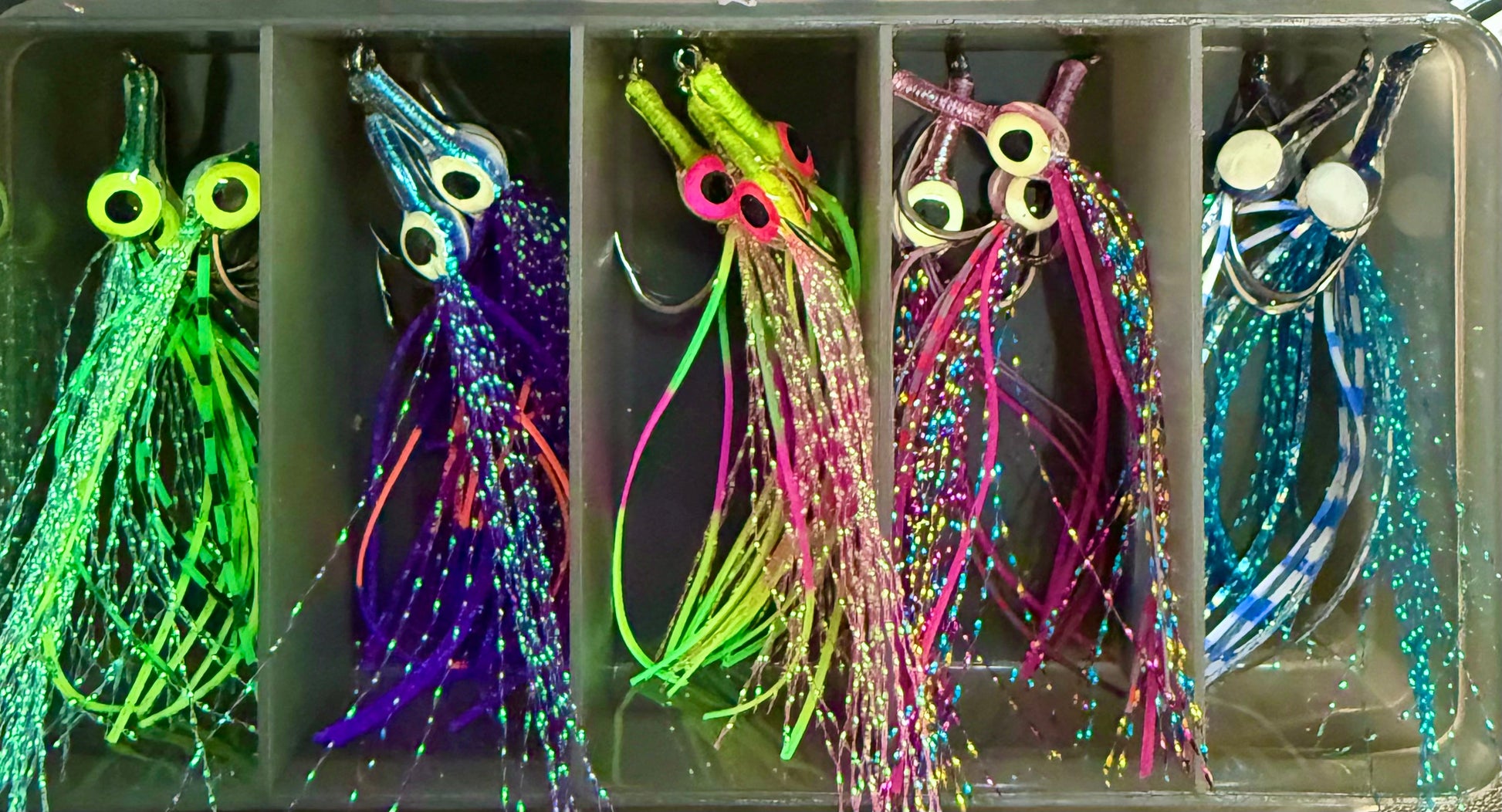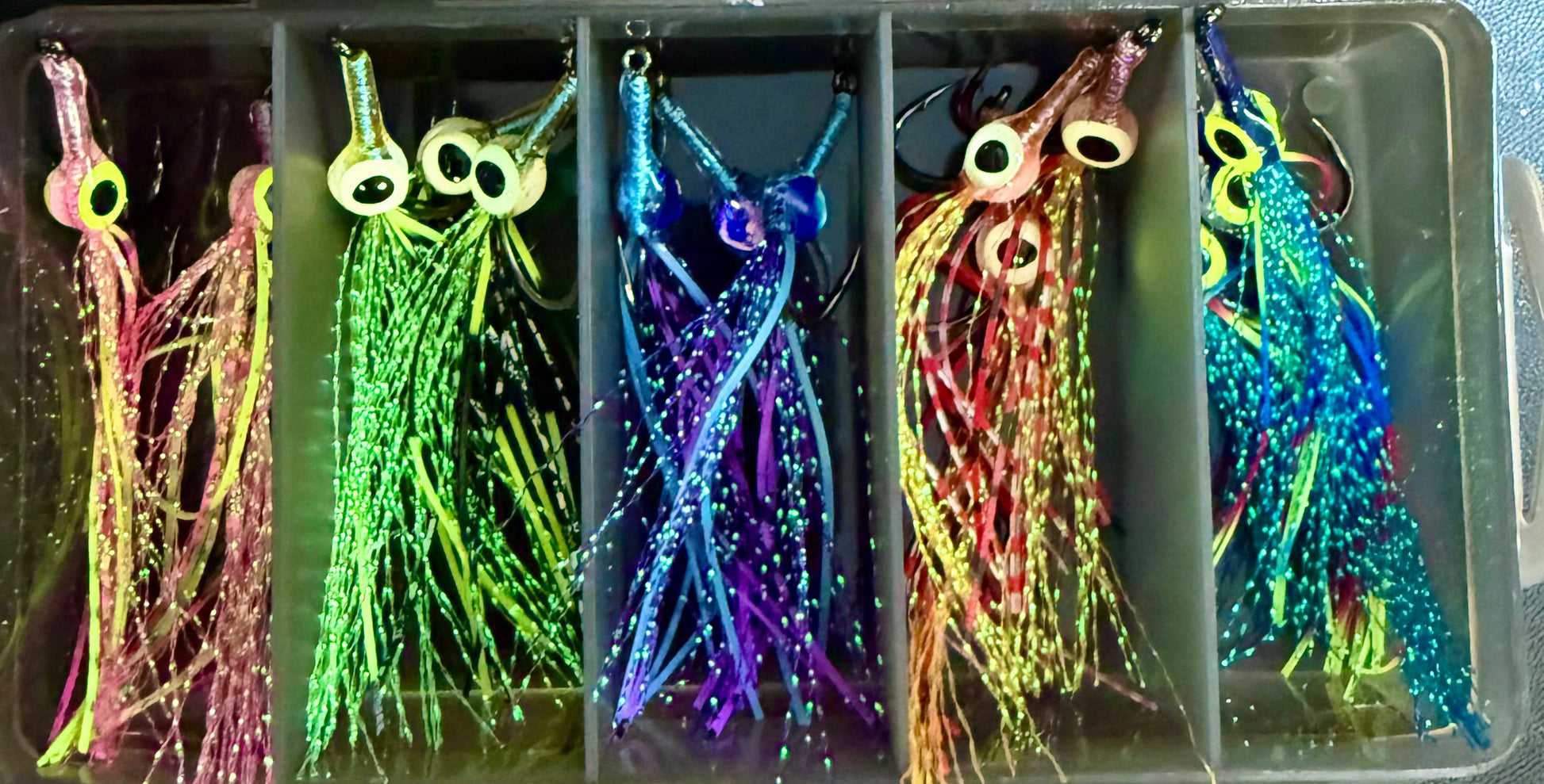 Each fly consists of glow eyes and variety of glow legs. Day or night use in shallow bottom fishing and shoreline whipping.