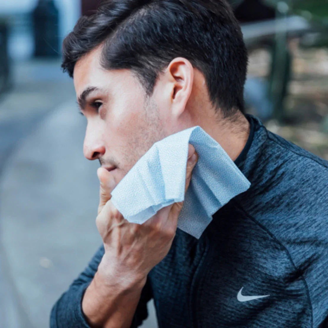Cooling + Cleansing Wipes: Wipe the Arctic Blue Ice Crystal side across skin to exfoliate and remove dirt and sweat. Use the other side to get a cooling caffeine boost. No rinsing needed.