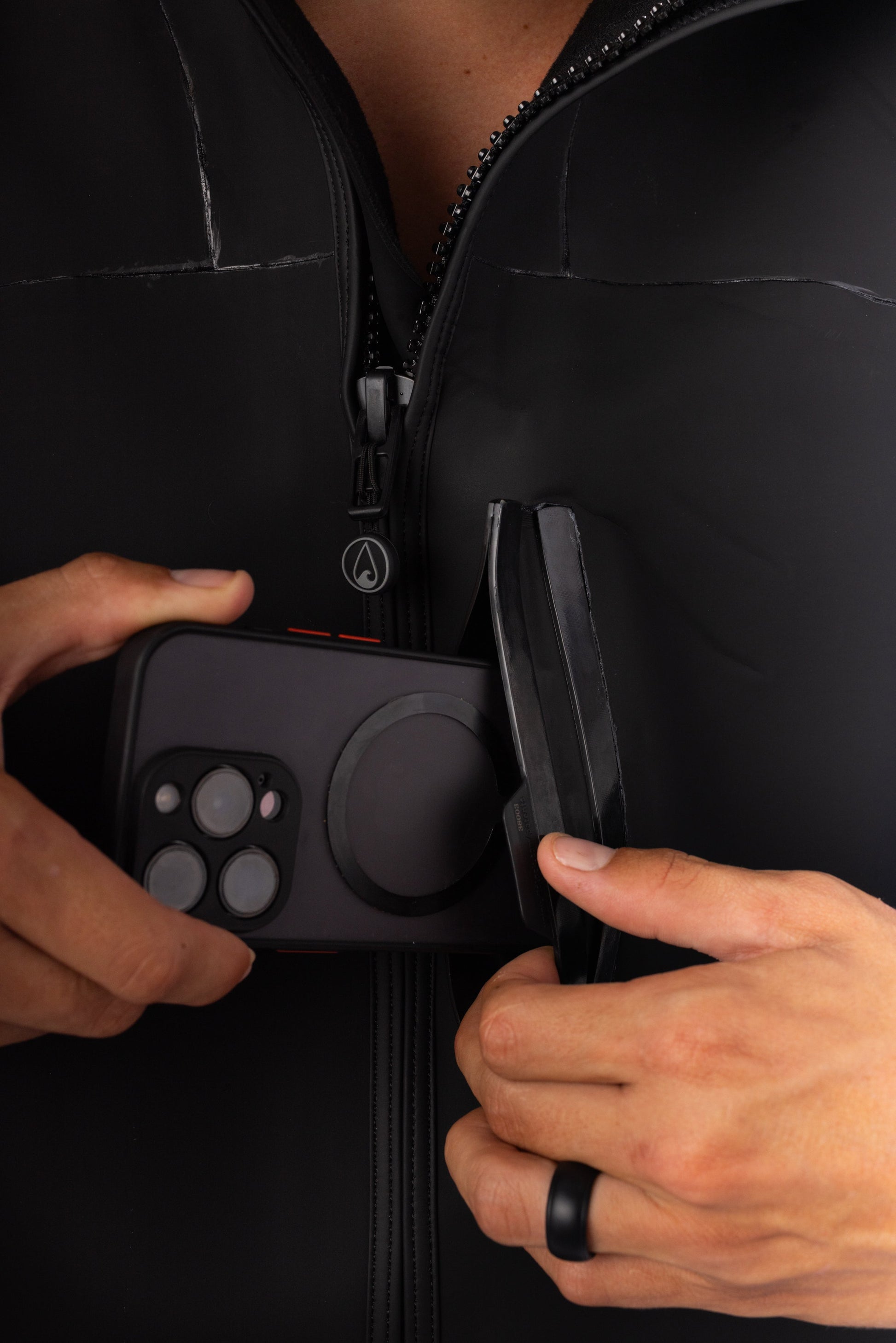 Experience ultimate protection on the water with the revolutionary SuperSkin Boat Coat. Meticulously crafted through two years of rigorous research and development with Hawaii's most skilled and daring watermen and women, this unparalleled coat boasts a wind and water-proof exterior that can withstand the harshest maritime conditions. Its innovative abrasion-resistant super skin coating ensures unbeatable durability, while the dual system hood keeps you warm and dry. And with the waterproof Fidlock pocket, your belongings are guaranteed to stay safe and dry on any aquatic adventure. Plus, the side zippers add an extra level of comfort for those intense jet ski rides. Elevate your boating experience with the SuperSkin Boat Coat - a true masterpiece of design and functionality.
