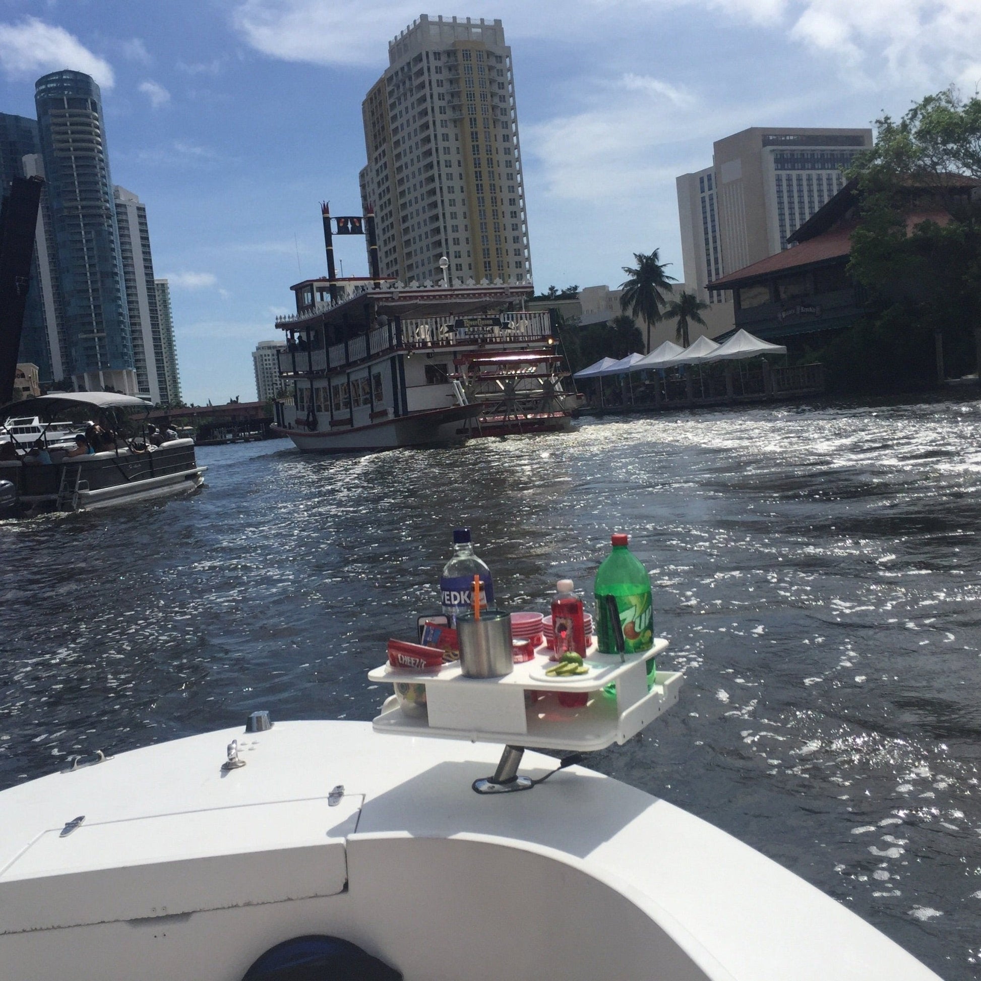 The Docktail Bar and table holds everything you can possibly want for a fun day on the water! No more worries about spilled drinks or broken glass from cups and bottles sliding around the rocking boat. Let the Docktail Bar hold your drinks so you can have all the fun!