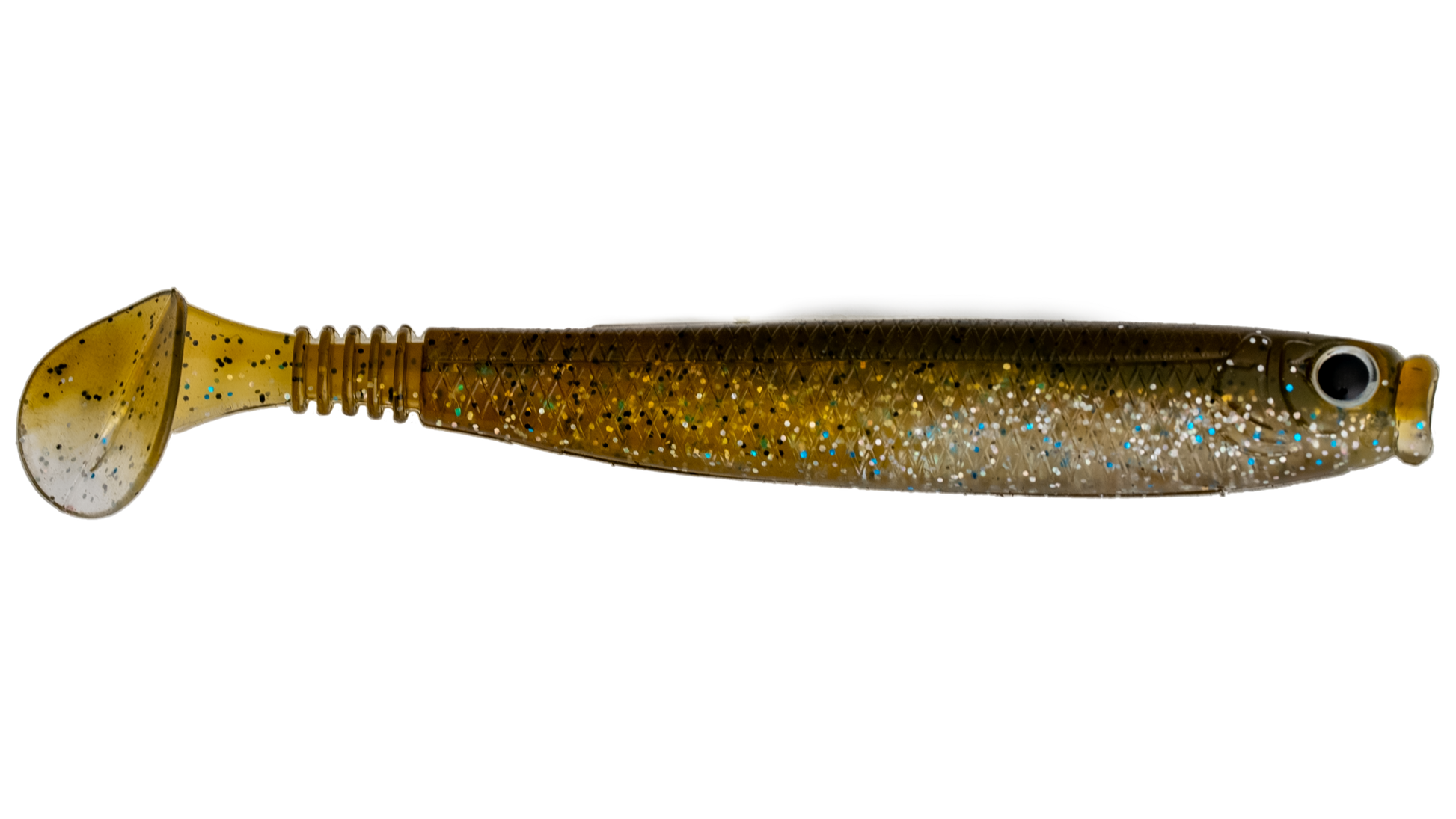 Available in 4" and 3", this thin-profile swim bait with a boot tail mimics a real bait fish. It swims slowly on the bottom or can be burned fast without rolling. Compatible with top or belly hooks.