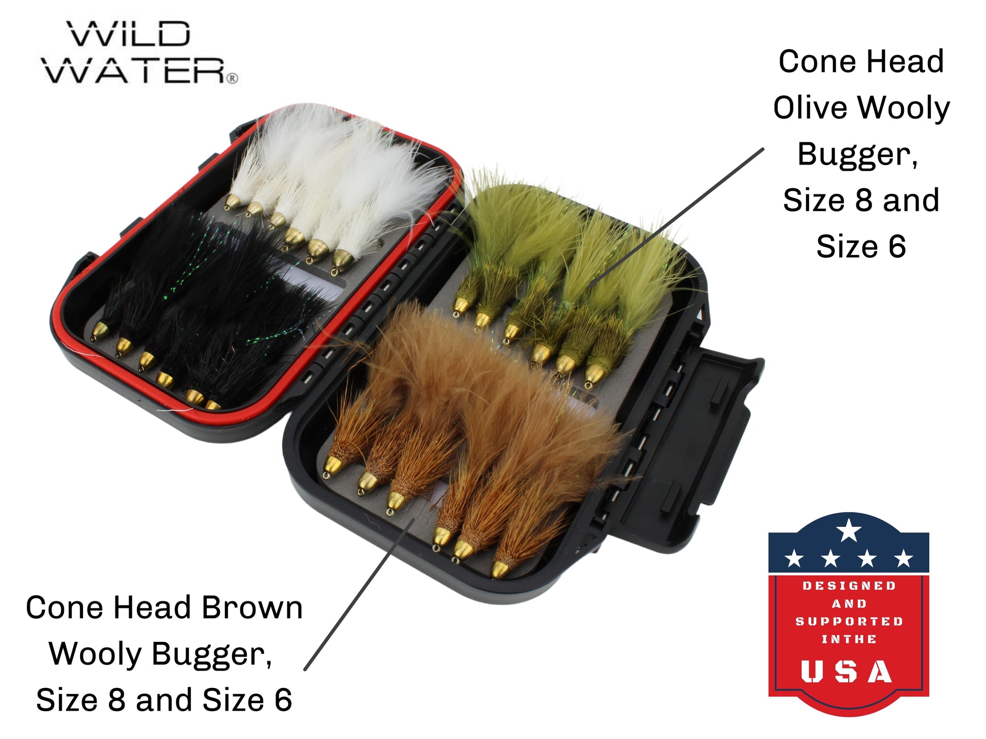 Cone Head Wooly Bugger Fly Assortment, 24 Flies | Fly Box | Wild Water Fly Fishing